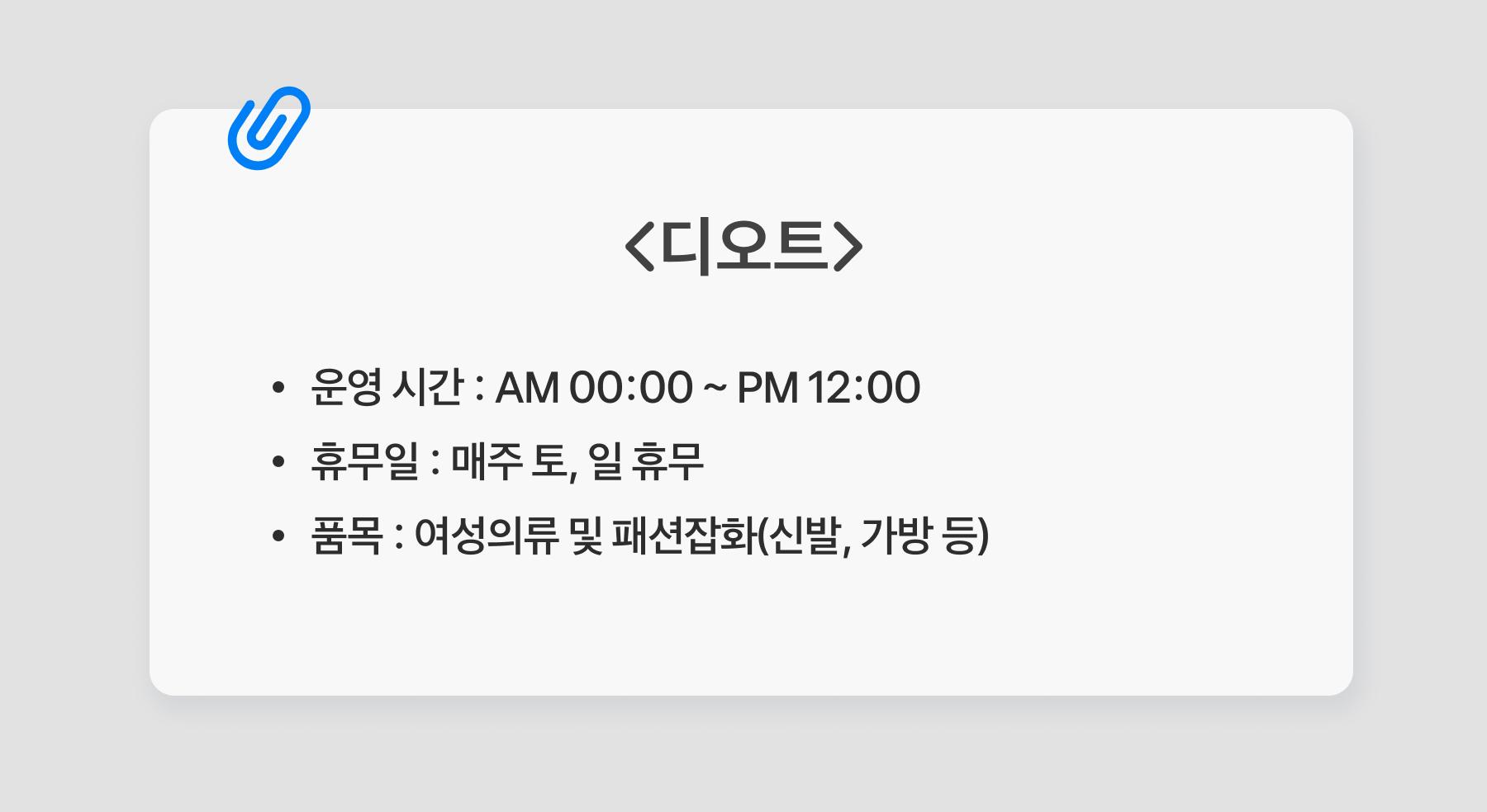 *운영시간과 휴무일은 매장별 상이하니 방문 전, 꼭 확인해 주세요.