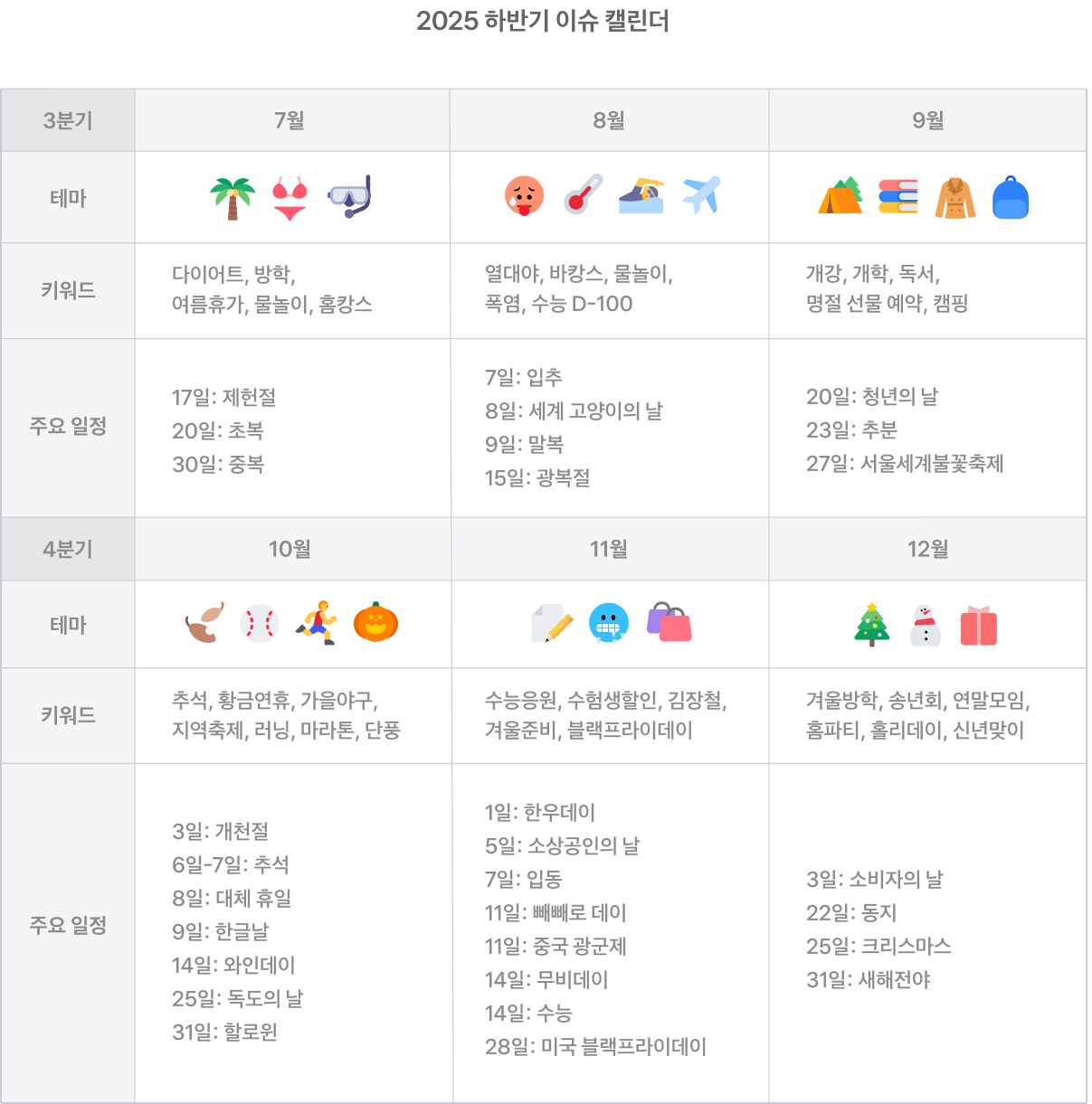 2025 하반기 쇼핑몰 마케팅 이슈 캘린더