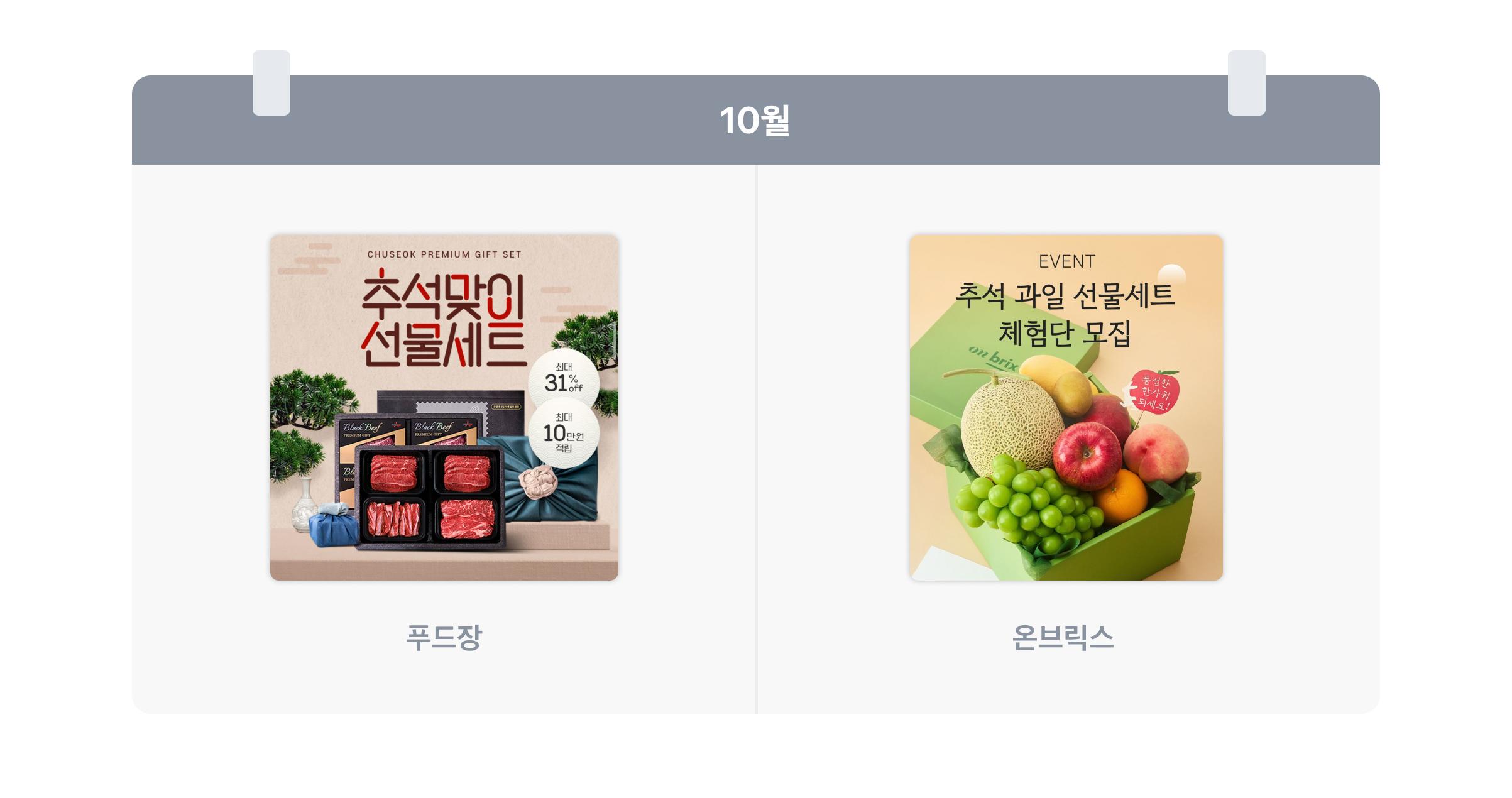 - 식품: 와인·위스키, 수능 응원 선물 세트, 가을 제철 코어 메뉴 (유자, 홍시, 알배추)