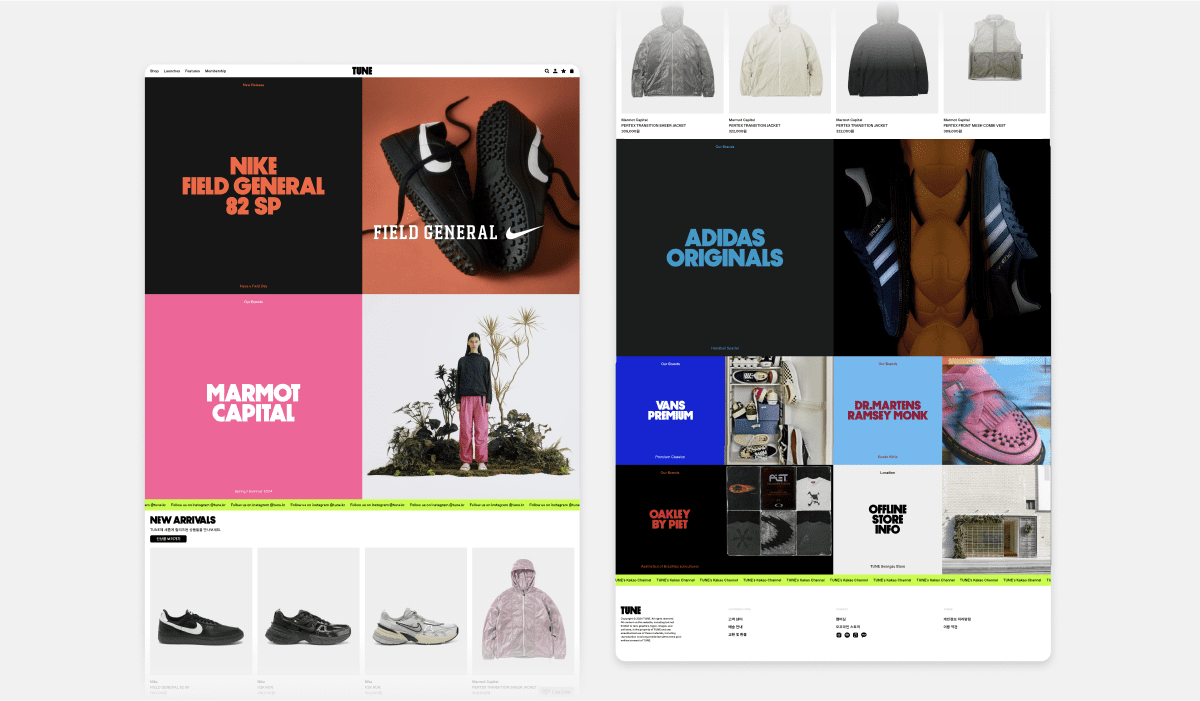 JKND에서 ‘튠(TUNE)’이라는 새로운 편집숍을 오픈했는데요. 이 브랜드의 홈페이지를 만드는 것도 디지털팀의 업무예요.