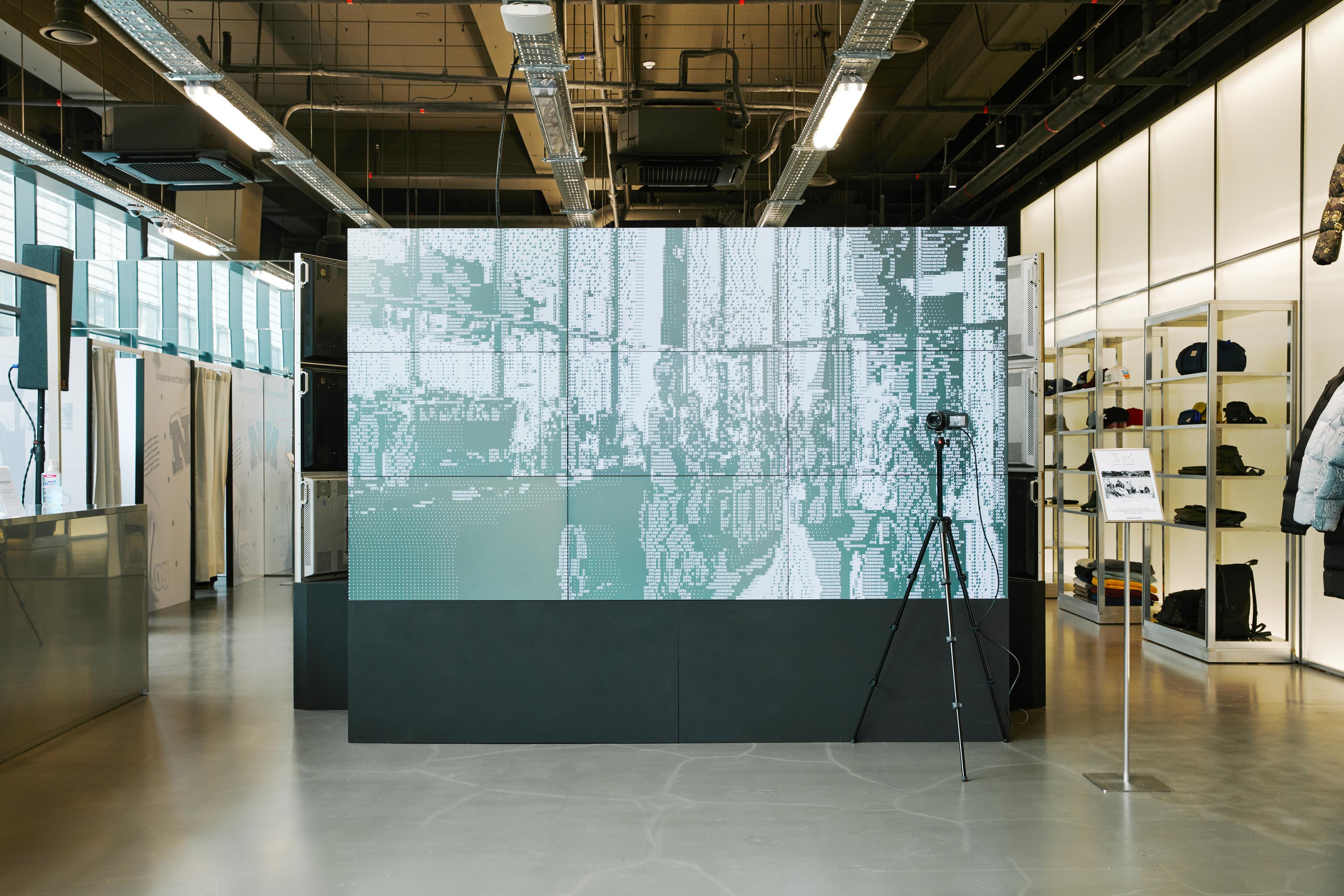 굉장히 많은 작업을 했는데, 그중에서도 2022 F/W 컬렉션을 기념하는 전시 ‘OFFLINE ONLY’에서 진행했던 인터랙티브 미디어월이 기억에 남네요. 사람들이 스크린 앞 카메라에서 촬영한 모습을 ASCII(아스키 코드)로 변환해 미디어월에서 보여줬어요. 전시에 방문한 사람들이 자신의 모습을 계속 찍으면서 참여하는 모습을 보니 뿌듯하더라고요.