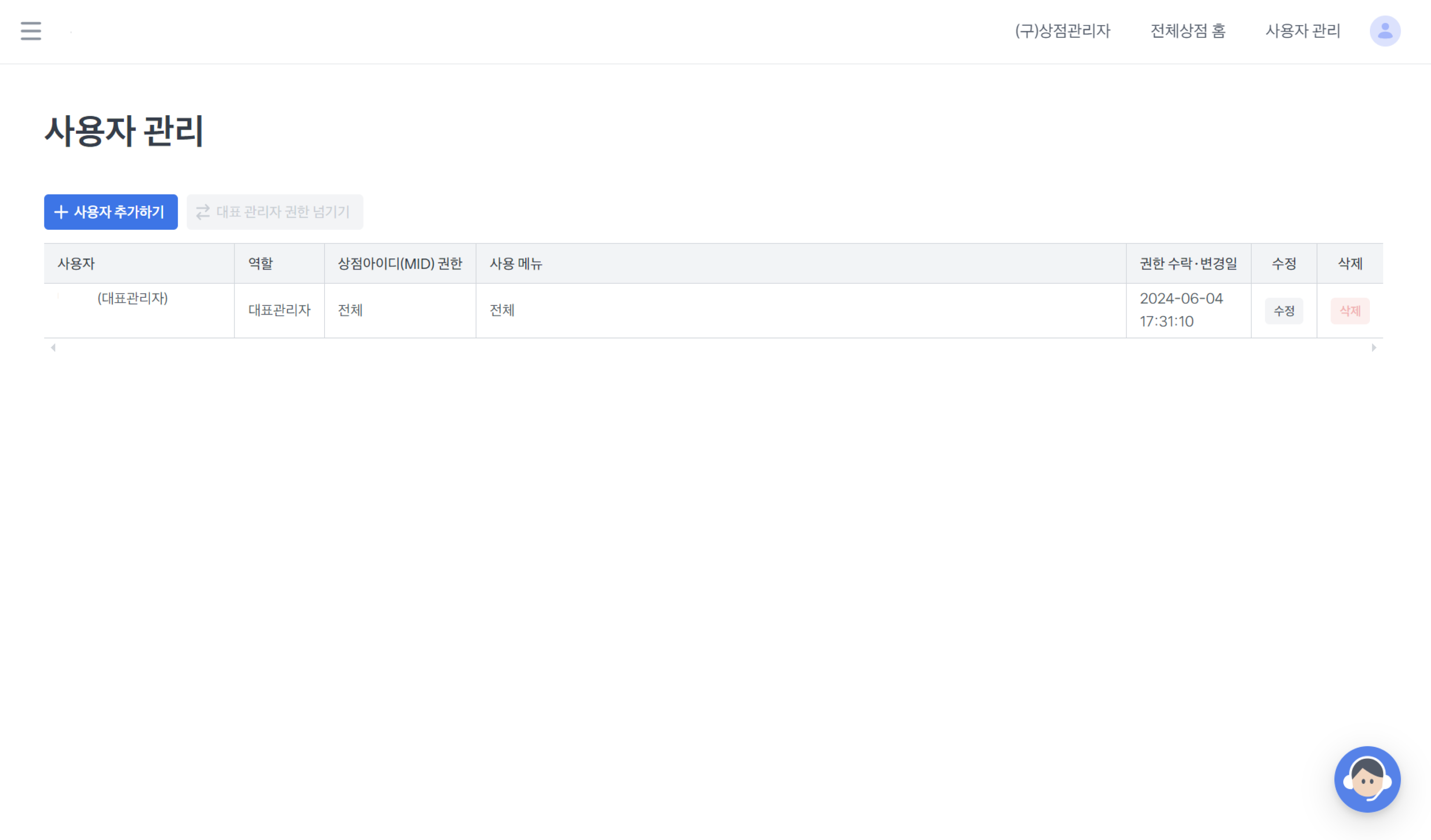 1. 상점관리자 > 사용자 관리 접속하기