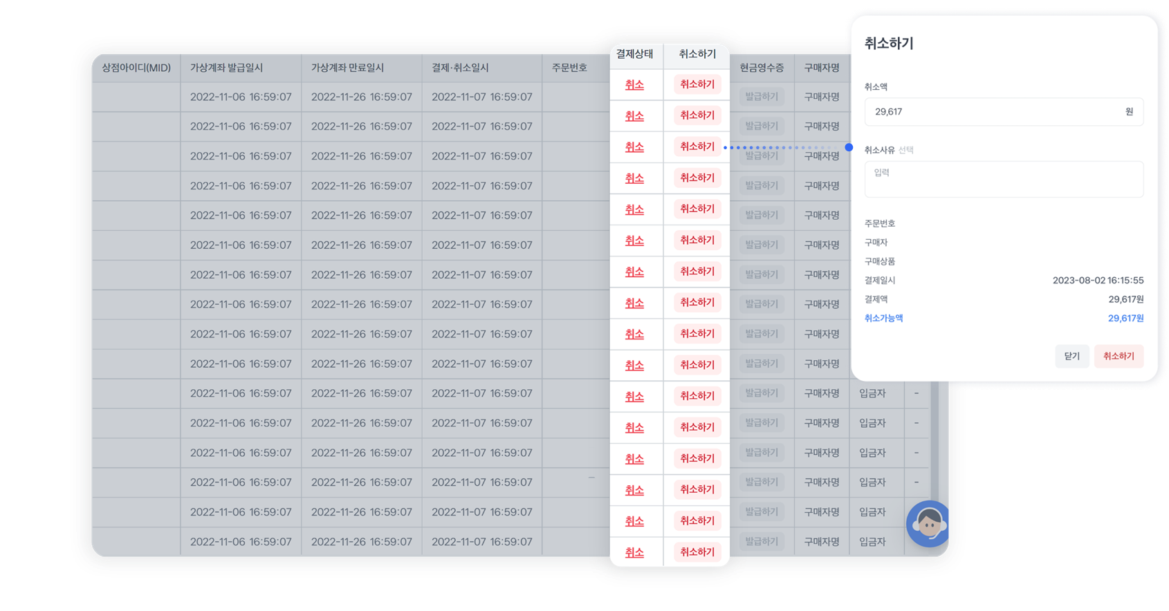 조회한 내역에서 전체 및 부분 취소를 할 수 있어요.