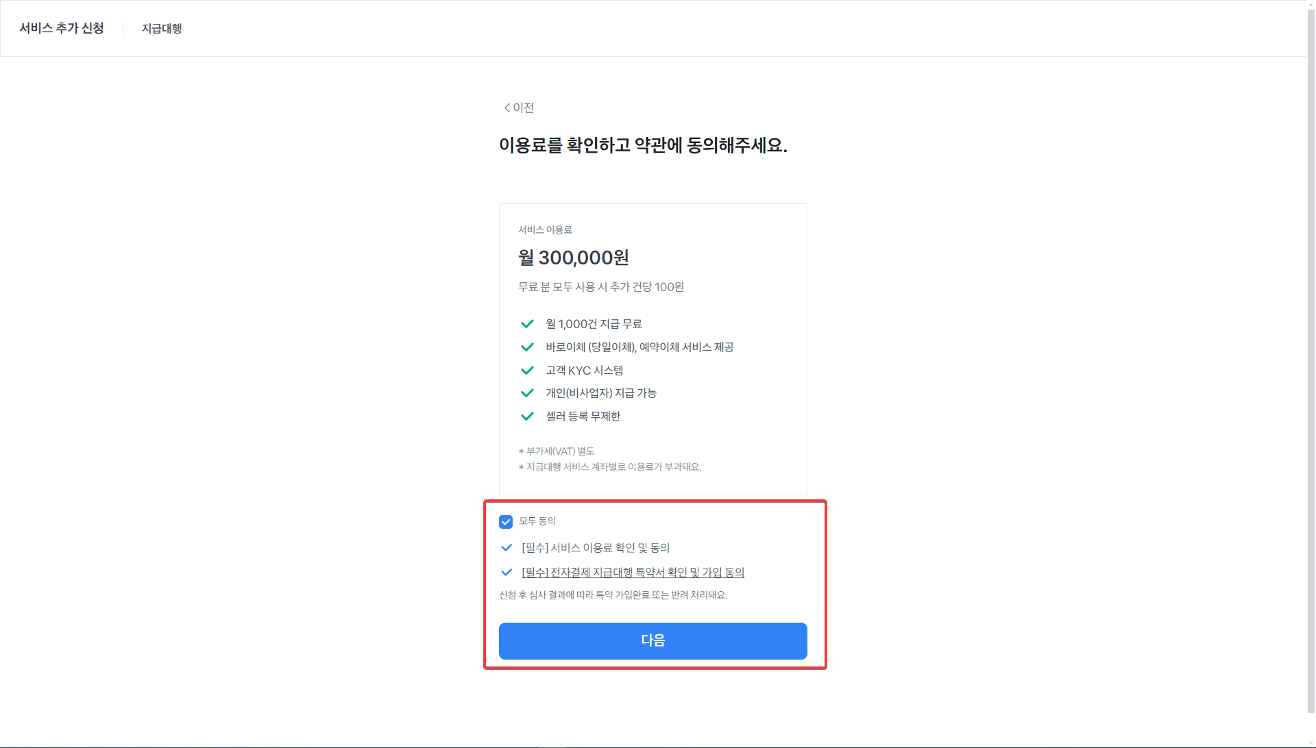 지급대행 서비스 이용료를 확인하고 약관에 동의해주세요