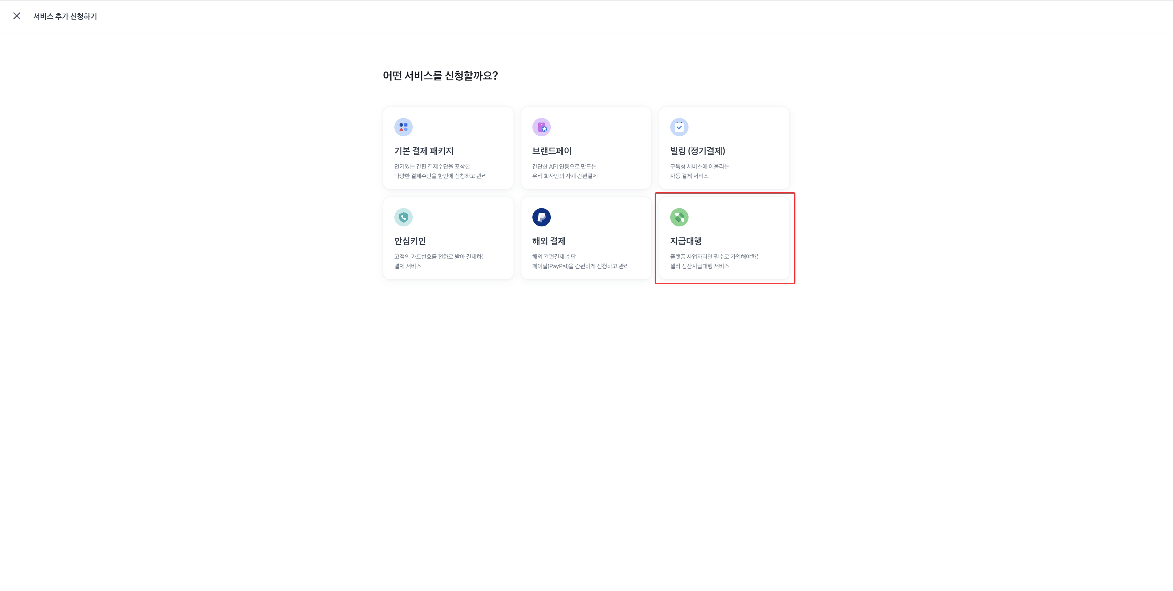 지급대행 서비스 이용 신청은 [상점관리자]를 통해 신청할 수 있어요