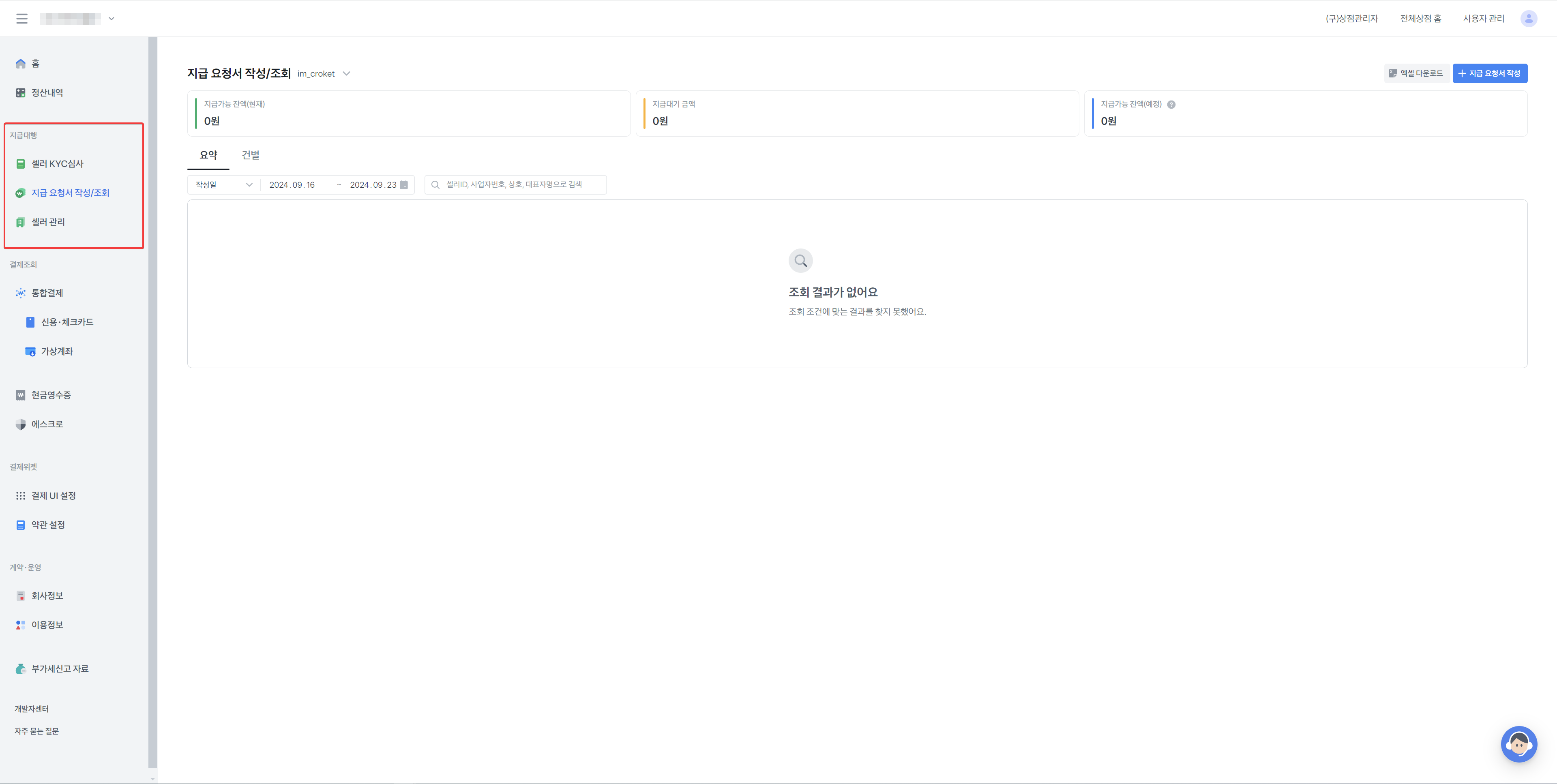 계약이 완료되면 상점관리자 왼쪽 메뉴에 지급대행 메뉴를 확인할 수 있어요