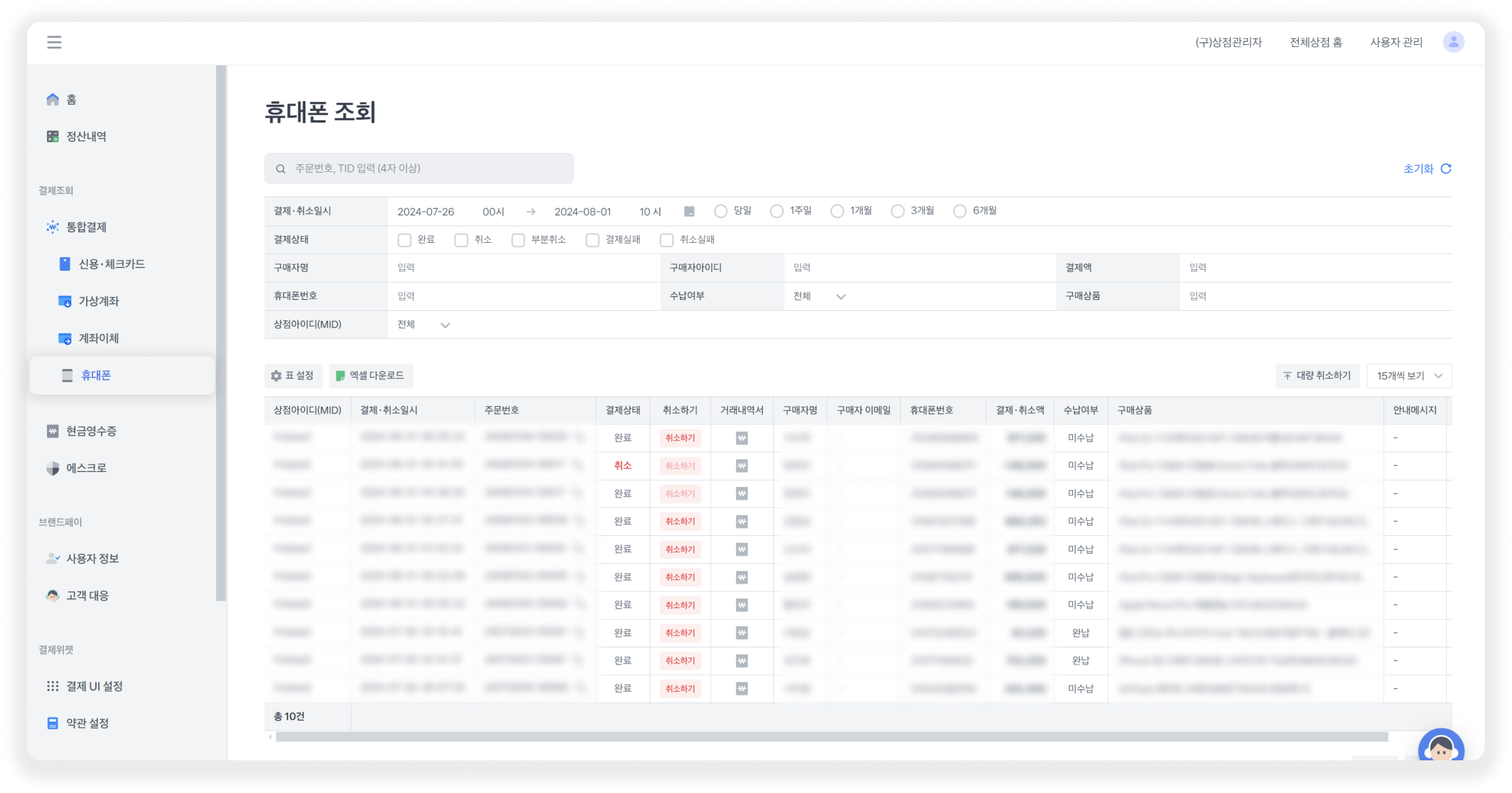 Q. 실수로 휴대폰결제 내역을 취소했는데, 복구할 수 있나요?