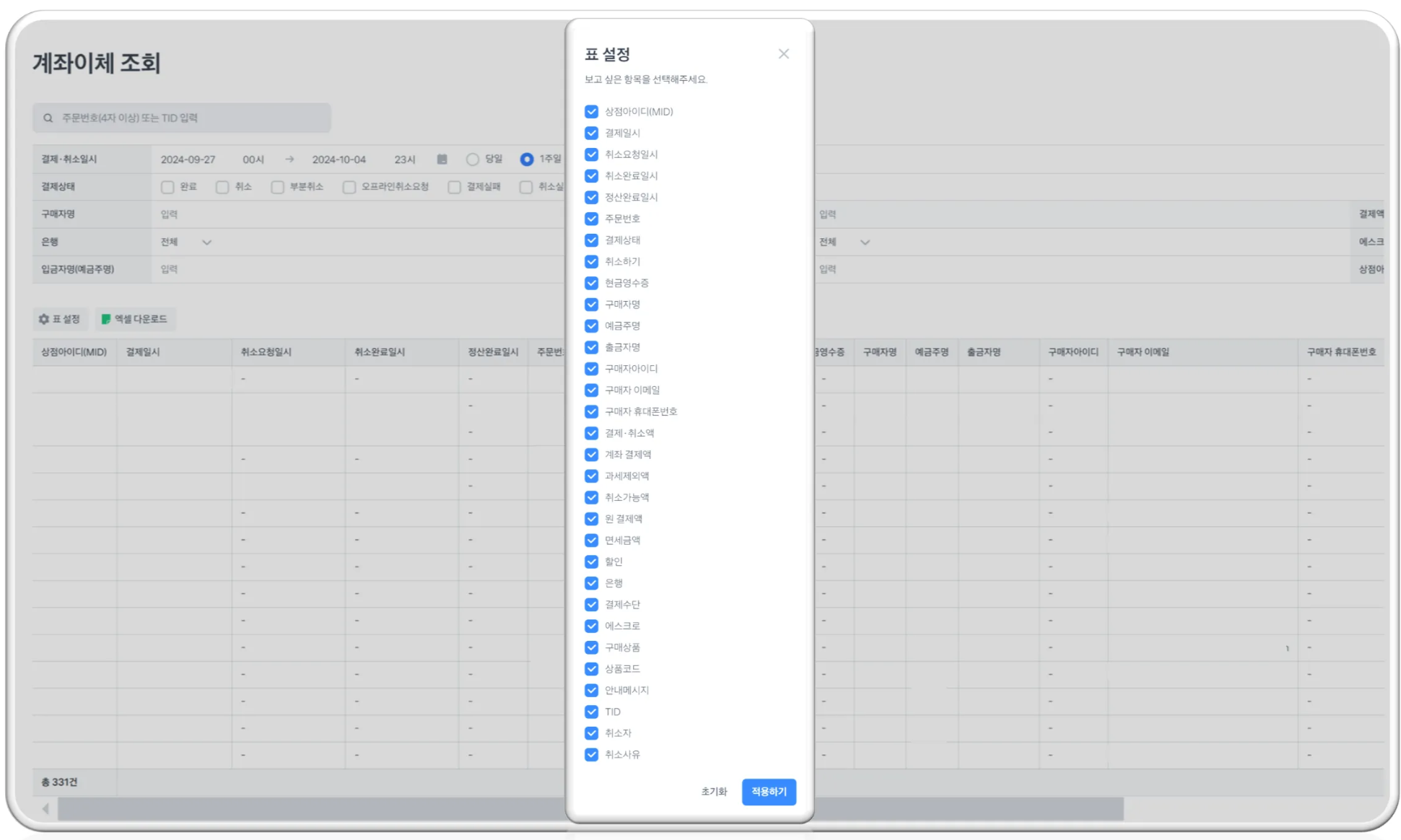 계좌이체 결제조회 항목에 대해 상세히 알려드릴게요.