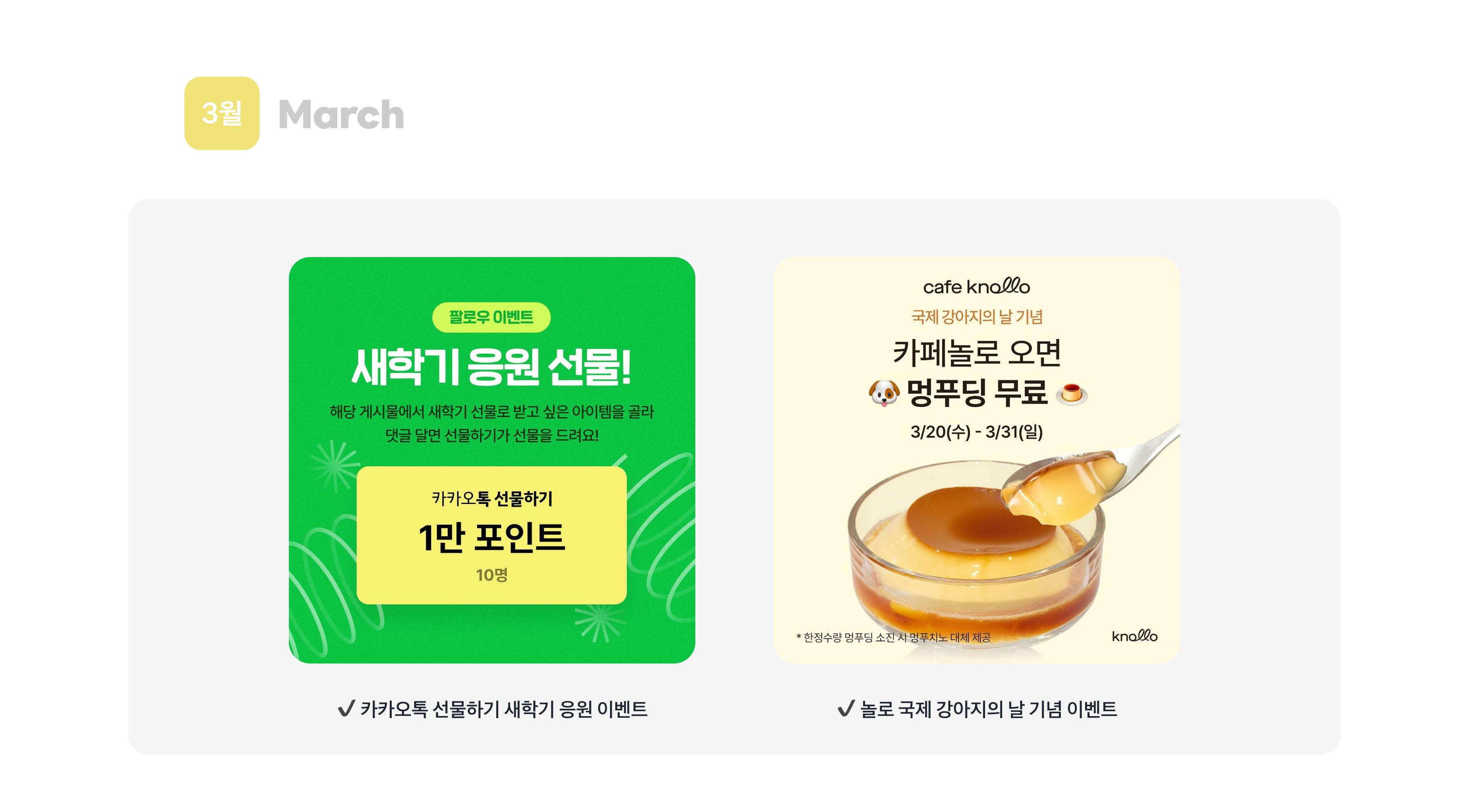 2월은 많은 학생들이 졸업을 준비하는 시즌이에요. 졸업하는 학생들을 위해 선물을 준비하는 지인들이 많겠죠? 이를 대비해 졸업 선물 추천 포스트, 졸업생 인증 할인 이벤트, 졸업 축하 선물 기획전과 같은 형태의 프로모션을 미리 계획해 두시는 게 좋아요.