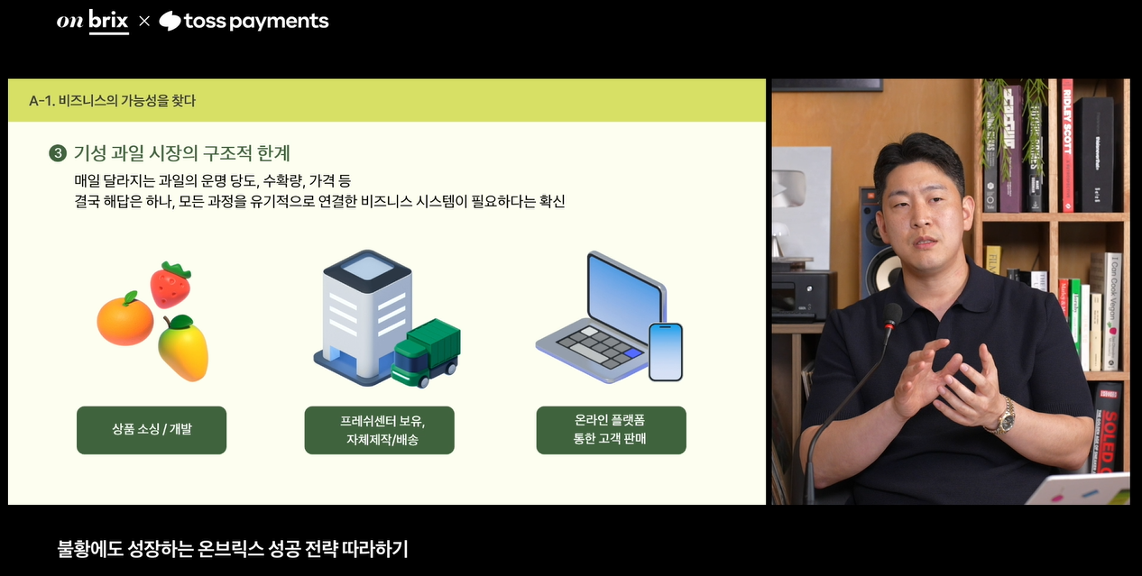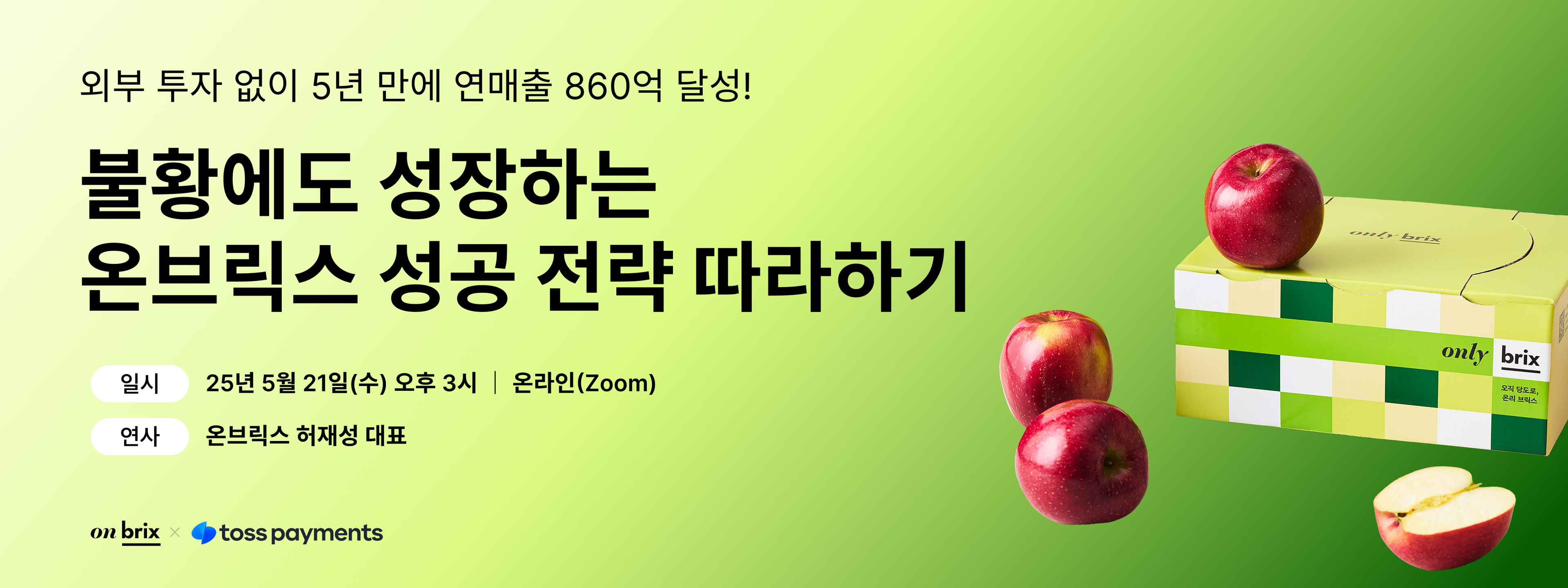 지난 5월 21일, 토스페이먼츠는 온브릭스의 허재성 대표와 함께 <불황에도 성장하는 온브릭스 성공 전략>을 주제로 웨비나를 개최했습니다. 600명이 넘는 사업자 및 업계 관계자 분들이 라이브에 참여해 뜨거운 관심을 보여주셨고, 1시간 동안 이어진 웨비나에서는 온브릭스의 성장 과정과 실질적인 인사이트가 풍성하게 오갔습니다.