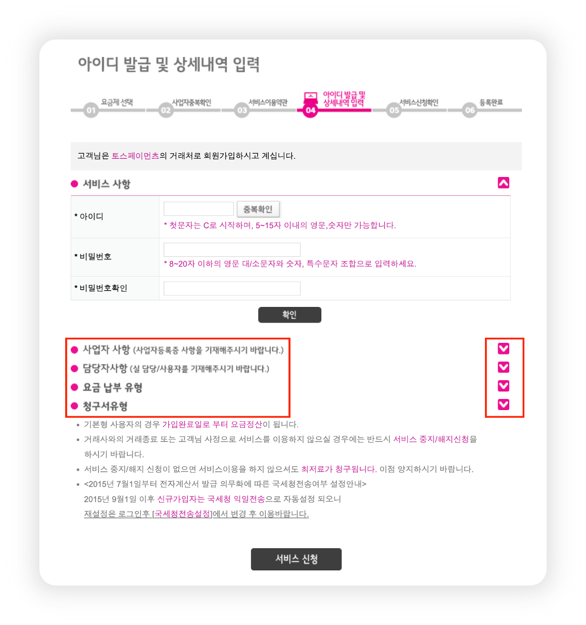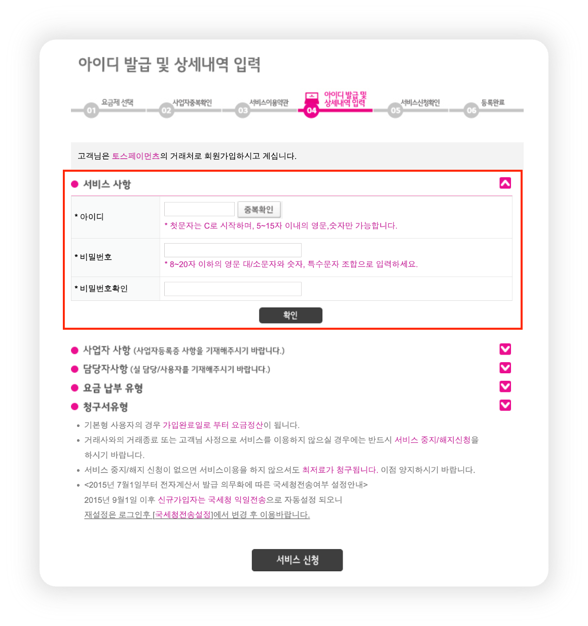 서비스 신청 정보를 확인되면 최종 신청완료해주세요.
