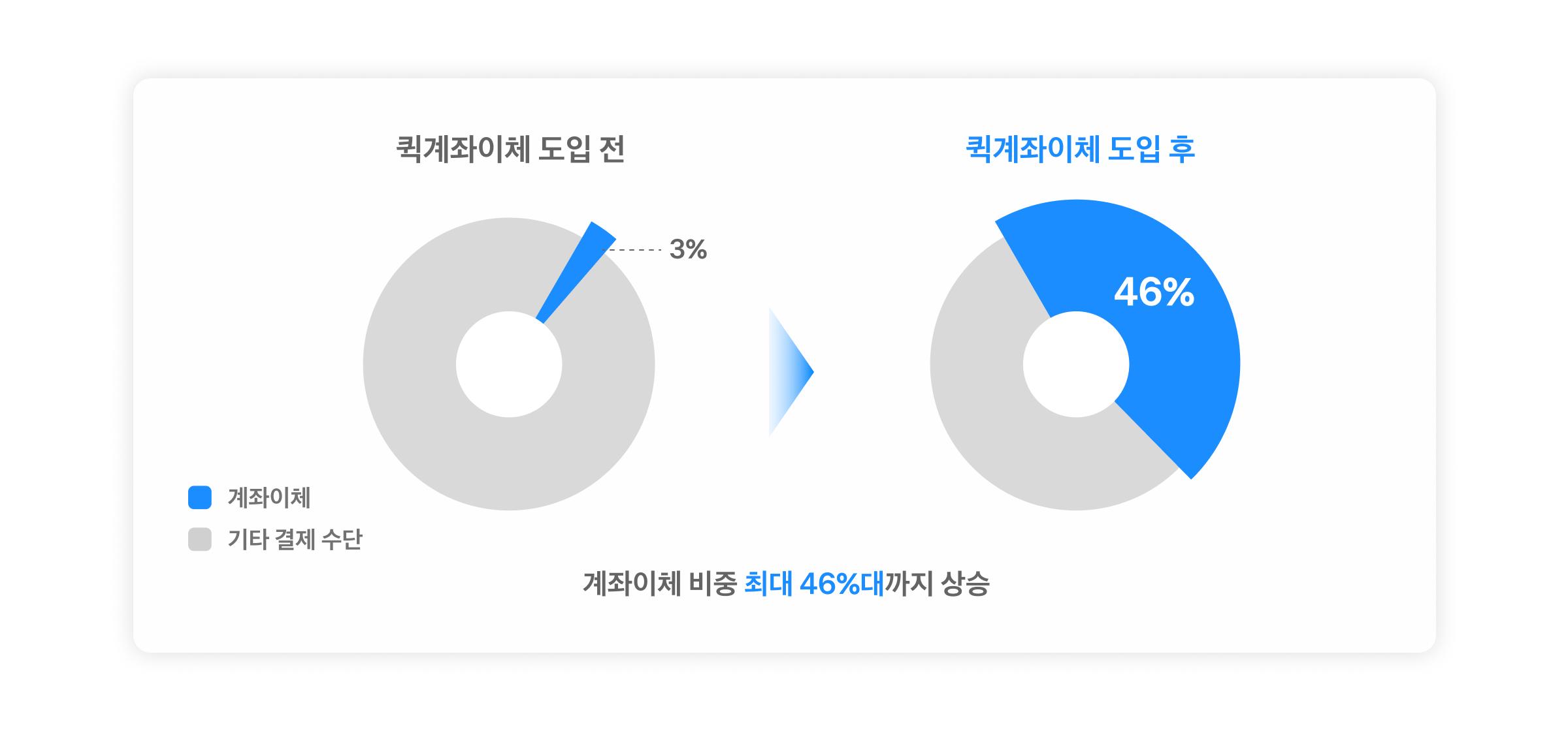 실험과 개선의 반복, 실질적인 전환으로 이어지다 이너시아는 토스페이먼츠와 함께 다양한 프로모션 및 UX 실험을 함께 진행해 왔습니다. 특히 퀵계좌이체 비중을 끌어올리기 위한 실험에 집중했으며, 이 과정에서 실질적인 결과들이 빠르게 나타났습니다.