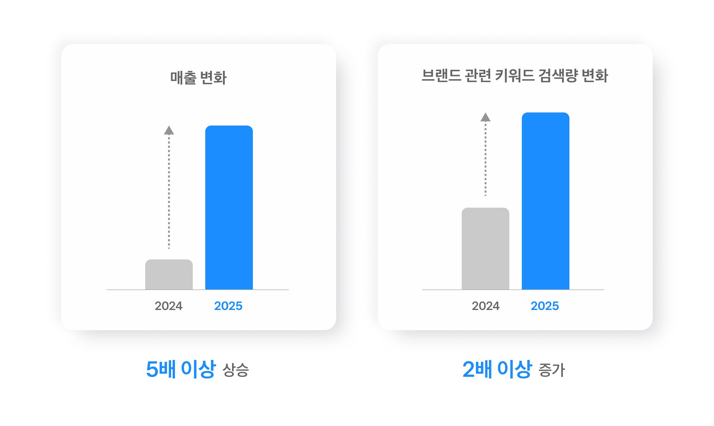 이너시아는 브랜드 런칭 2년 만에 2,000만 장 판매, 100억 원 이상의 매출을 달성했어요. 작년 대비 매출은 약 5배 이상 상승했고, 브랜드 관련 키워드 검색량도 2배 이상 증가했어요. 올해는 매출 200% 이상의 성장을 목표로 달려가고 있습니다.