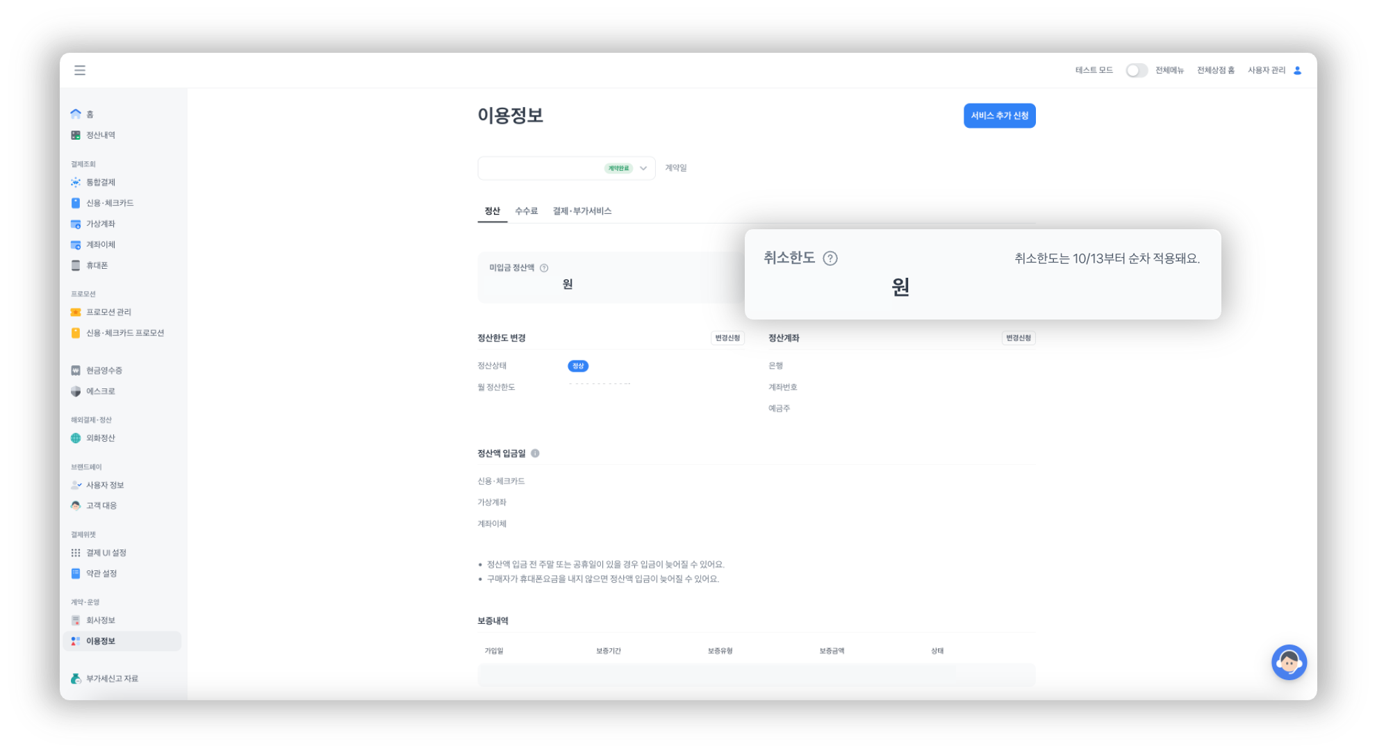 - 2025년 9월 29일: 상점관리자 내에서 취소한도 금액 확인 가능