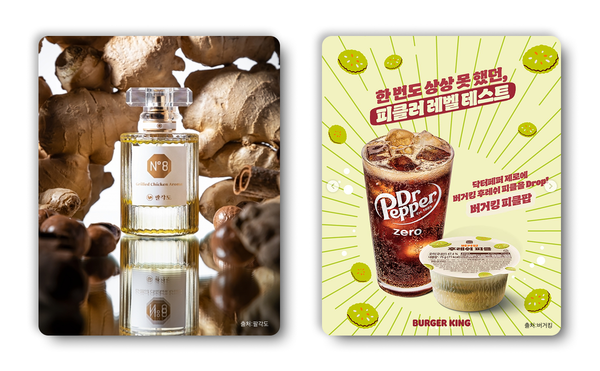 희소성 있는 협업은 이제 기준이 되었다. 생각지도 못한 조합이 많이 나온다. 닭갈비 프랜차이즈인 팔각도는 닭갈비 향수를 내놨고, 보쌈 프랜차이즈 원할머니보쌈은 보쌈향 향수를 냈다. 교보문고는 연세유업과의 협업을 통해 교보문고맛 크림빵을 출시했다. 모두 희소성 있는 협업이다. 기존 경험과는 다르니 SNS에 인증한다. 자연스럽게 바이럴 마케팅 효과가 창출된다. 때때로 괴식에 가까운 조합도 등장한다. 버거킹은 SNS 인기 조합에 주목해 닥터페퍼 피클팝이라는 음료를 출시했다. 닥터페퍼라는 탄산음료에 피클을 조합해 마시는 것이다. 누군가에게는 의미 있는 조합이고, 또 누군가에게는 괴식이라는 평가를 받았다. 하지만 SNS에 인증이 넘쳐나며 확실한 마케팅 효과를 얻었다. 이처럼 알파세대는 재미가 소비의 기준이다. 무조건 재미만 바라보고 이뤄지는 생산 활동은 있을 수 없겠지만, 알파세대와의 소통을 위해선 기존과 다른 흥미 포인트를 고민하는 건 필수 조건이다.