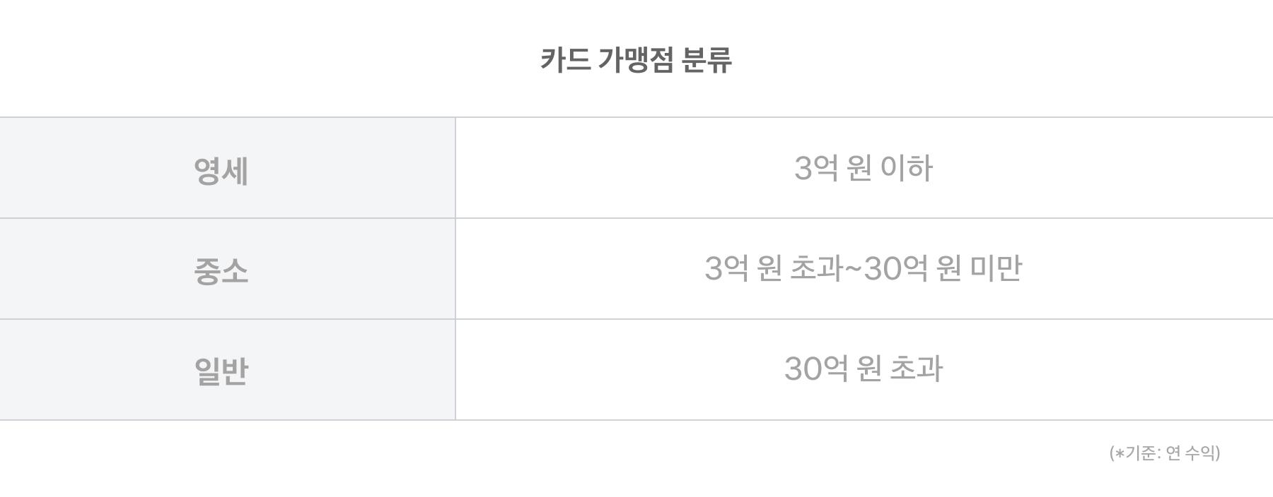올 상반기부터 매출 구간별 가맹점 등급이 새롭게 적용돼요. 가맹점 등급에 따라 결제 수수료율 정책이 다르게 적용되니 구간을 잘 확인하여 수수료 정책을 미리 세워두는 것이 중요해요.
