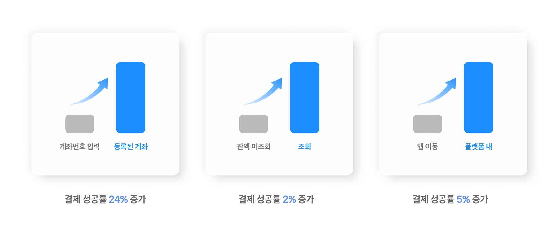 퀵계좌이체를 사용하면 결제 과정이 간편해지고 또, 앱 이동 없이 계좌 등록과 결제를 한 앱에서 할 수 있어 결제 성공률까지 큰 폭으로 개선할 수 있죠.