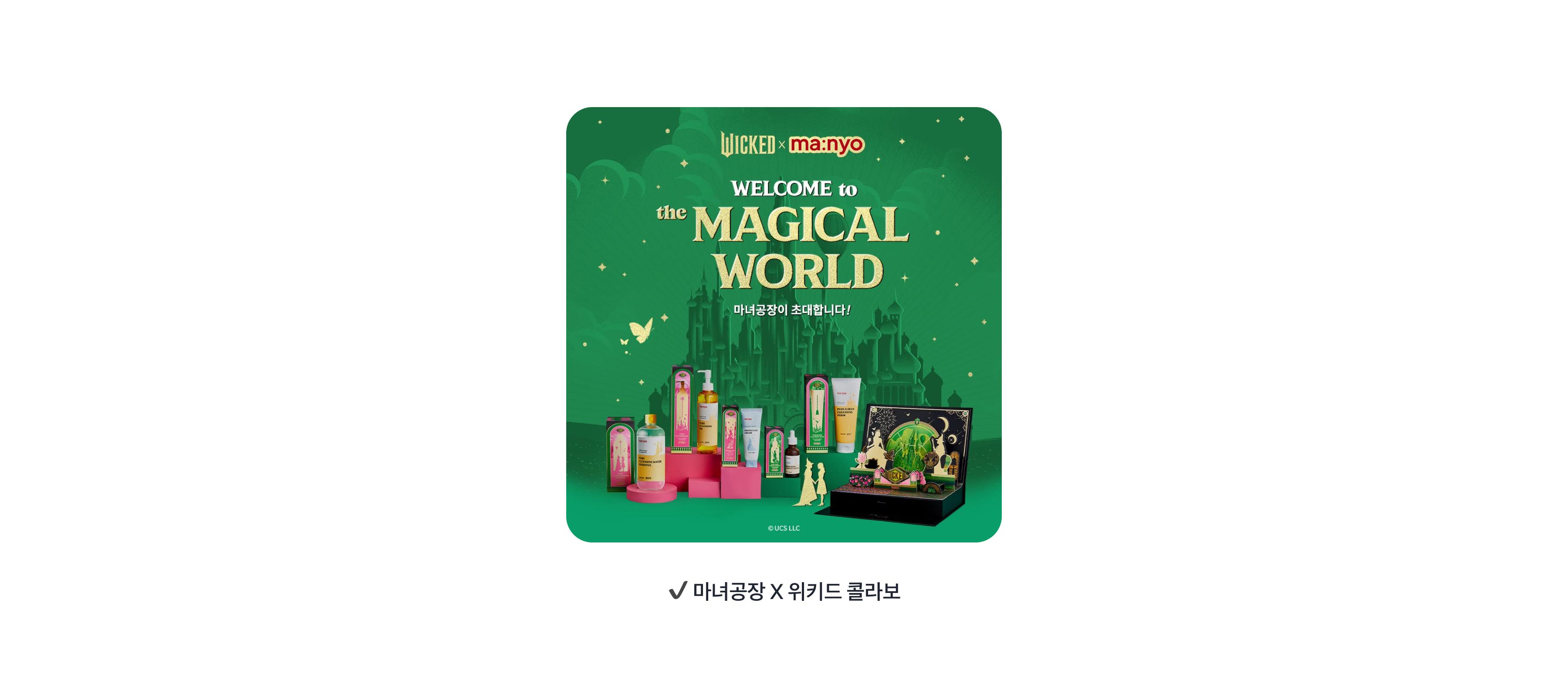 화장품 브랜드 마녀공장은 최근 큰 흥행을 거둔 영화 ‘위키드’ 개봉에 맞춰 콜라보레이션을 진행했어요. ‘웰컴 투 더 매지컬 월드’라는 콘셉트로 위키드 스페셜 에디션을 출시했죠.