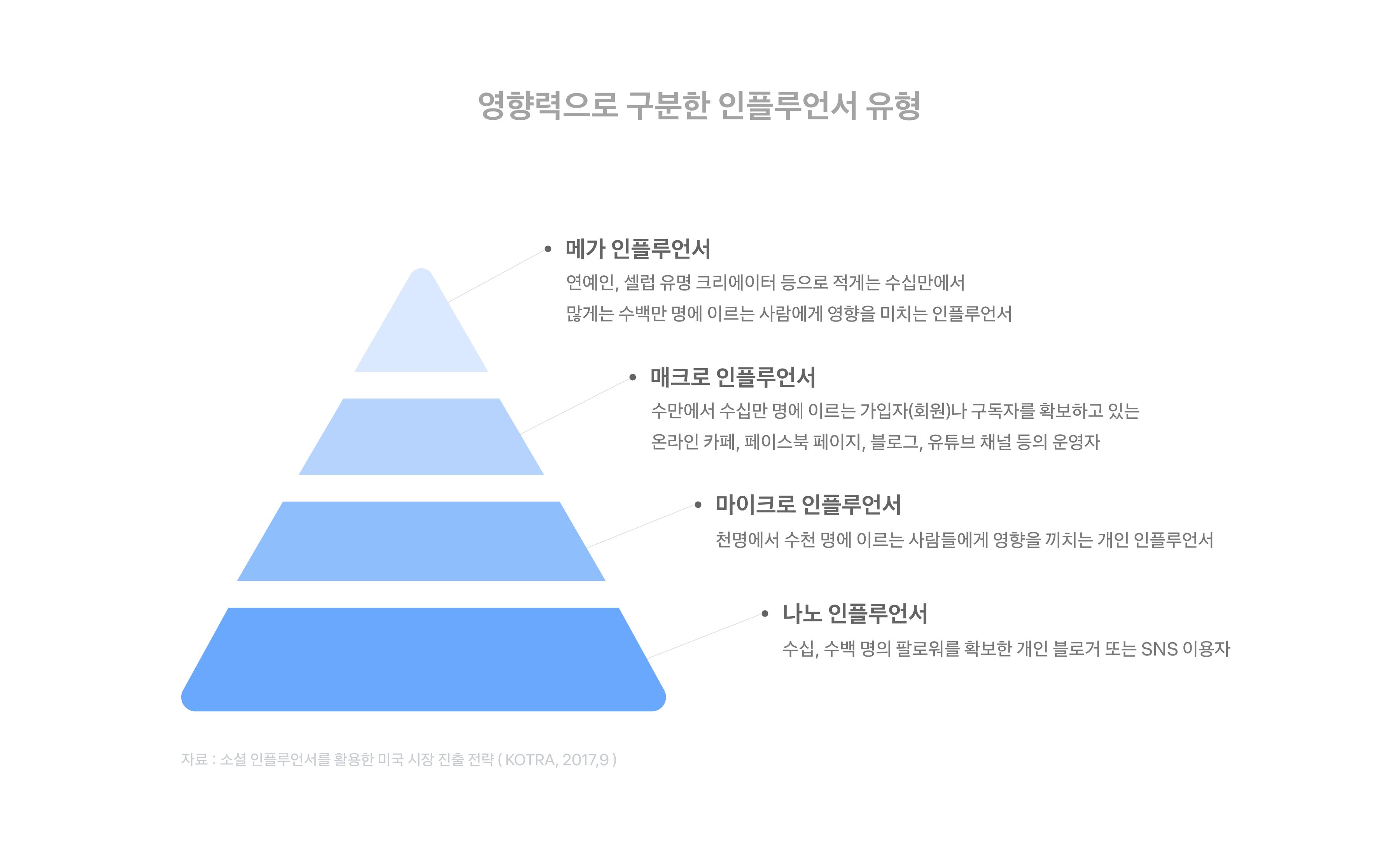 마이크로 인플루언서는 천 명에서 수천 명에 이르는 사람들에게 영향을 끼치는 개인 인플루언서를 의미해요. 연예인, 유명 크리에이터 등의 메가 인플루언서에 비해 팔로워 규모가 크지는 않지만, 특정 한 분야를 깊게 파다 보니 그 분야에서는 메가 인플루언서를 뛰어넘는 신뢰감을 가지고 있는 경우가 많아요.