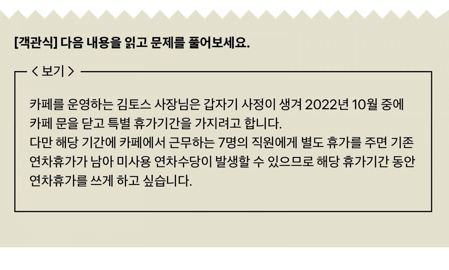 Q. 사장님이 정한 휴가일정에 맞춰 직원들이 연차휴가를 쓰게 하려고 할 때, 사장님의 대처로 가장 적절한 것은?