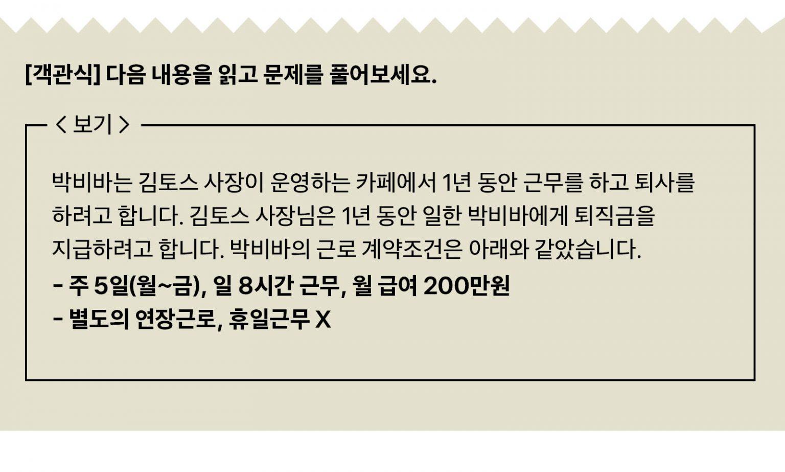 Q. 김토스 사장님이 박비바에게 지급해야 할 퇴직금은 얼마일까요? (편의상 한 달은 30일로 계산)