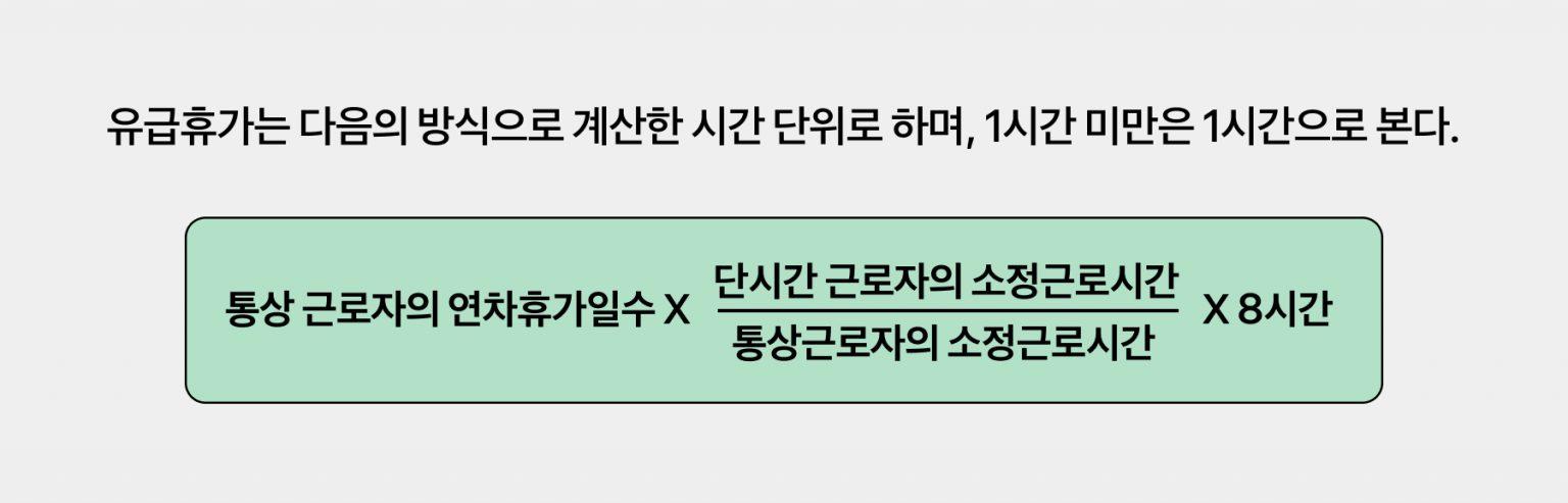 “1일 X (20/40시간) X 8시간 = 4시간” 따라서 김토스 사장님은 이알바에게 4시간의 연차유급휴가를 주면 됩니다.