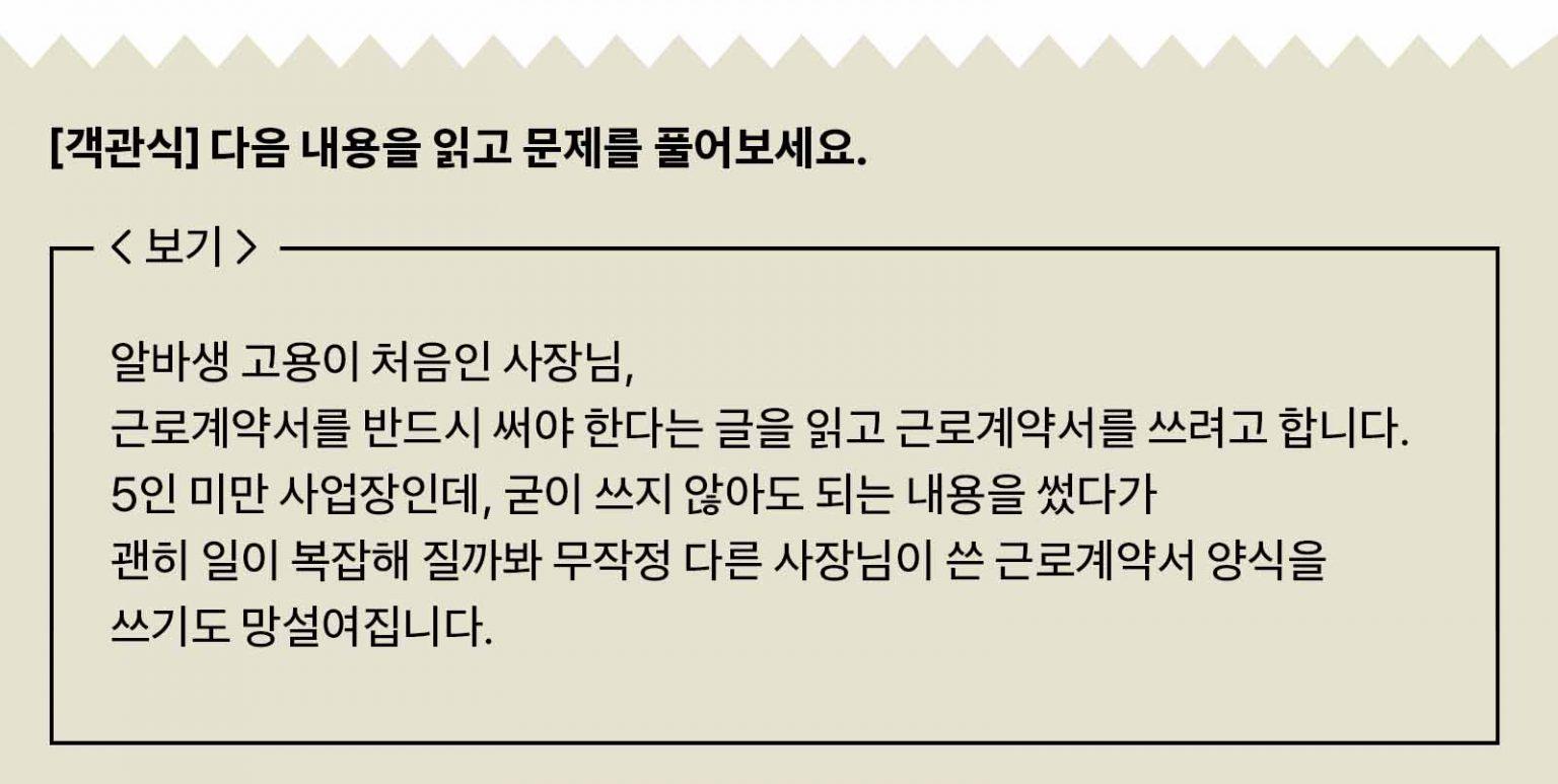 Q. 다음 중 사장님이 근로계약서에 반드시 넣어야 할 내용이 아닌 것은?