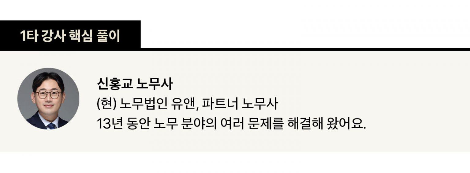 기업 노무 전문가. 10년 동안 롯데월드 인사팀에서 일했고 현재는 노무법인 유앤 파트너 노무사, 고용노동부 강사 등으로 활동하고 있습니다. 롯데월드뿐 아니라 청년사관학교, 고용노동부 등에서 다양한 노무 프로젝트를 진행해 왔습니다.