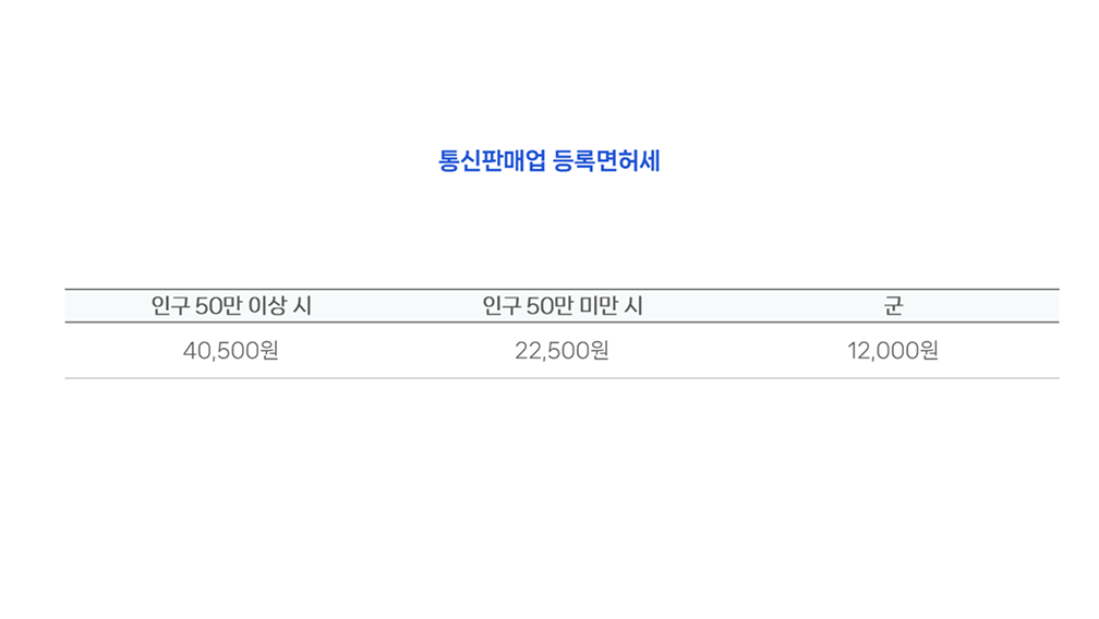 통신판매업은 사업 개시일 전 또는 개시 후 즉시 신고를 하는 것이 좋아요. 신고할 때 따로 수수료가 발생하진 않지만 대신 ‘통신판매업 등록면허세’를 내야 해요. 지방세법에 따라 매년 1월 1일을 기준으로 부과하며, 납부 금액은 인구 50만 이상 시는 40,500원, 인구 50만 미만 시는 22,500원, 군은 12,000원으로 사업장 소재 지역에 따라 차이가 나요.