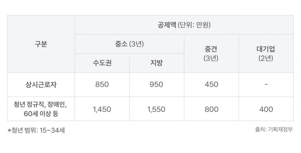 이외에도 근로자 고용 시 ‘고용증대세액공제’를 받을 수 있어요. 말 그대로 고용을 증대시킨 기업에 대해 세액공제를 해주는 건데요. 조건에 따라 공제 가능한 세액 규모가 달라져요. 만약 지방에 위치한 중소기업이 청년 정규직을 고용할 경우, 최대 1,550만원까지 공제 가능해요.