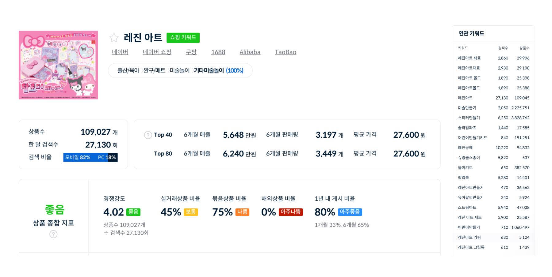 앞에서 살펴봤듯이 검색 수가 많다고 해서 무조건 좋은 아이템은 아니에요. 경쟁이 치열하고 우위를 선점한 판매자도 많거든요.