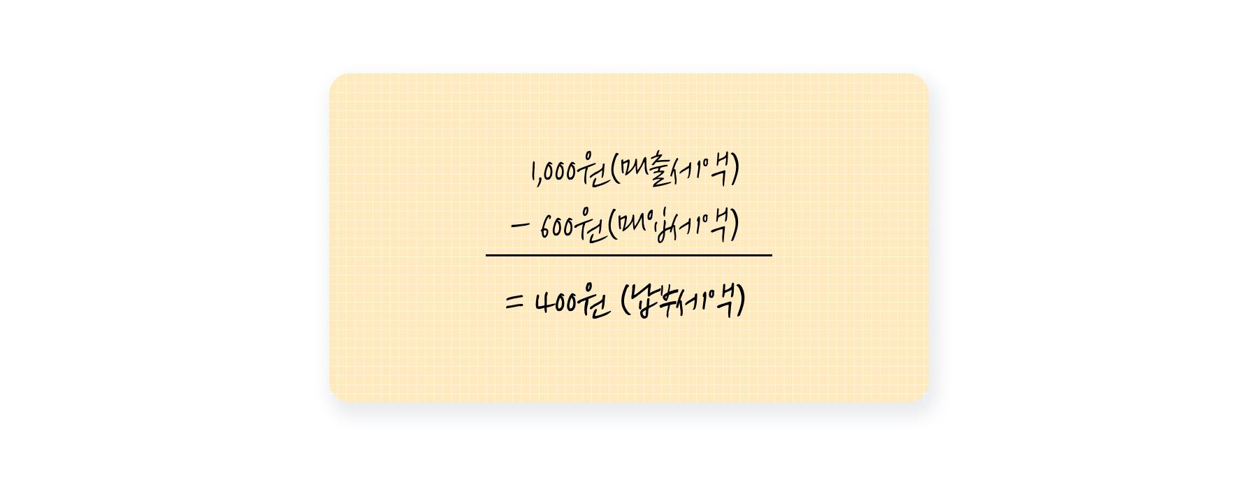 1만 1천원짜리 물건을 팔 때 쓴 금액이 6천 6백원이라면, 매입세액은 6백원이 되죠. 사장님이 납부할 부가세액을 계산해 볼까요?