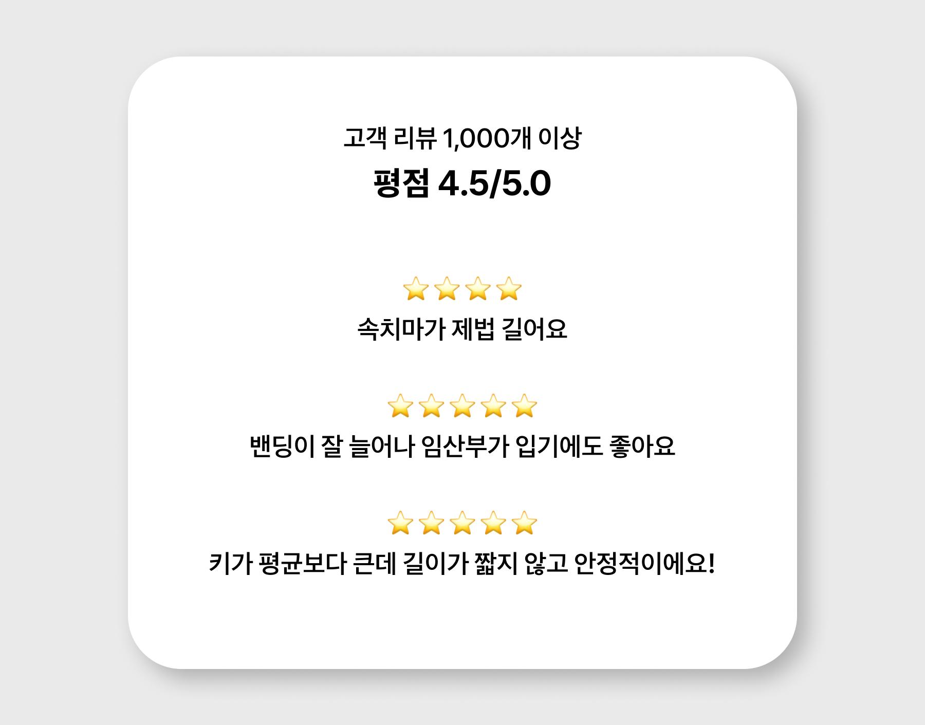 예를 들어 고객 리뷰 중에서도 ‘속치마가 제법 길다’ ‘밴딩이 잘 늘어나 임산부가 입기도 좋다’ ‘키가 커도 길이가 잘 맞는다’ 등 고객이 참고할 만한 정보가 같이 있는 것들을 활용했어요.