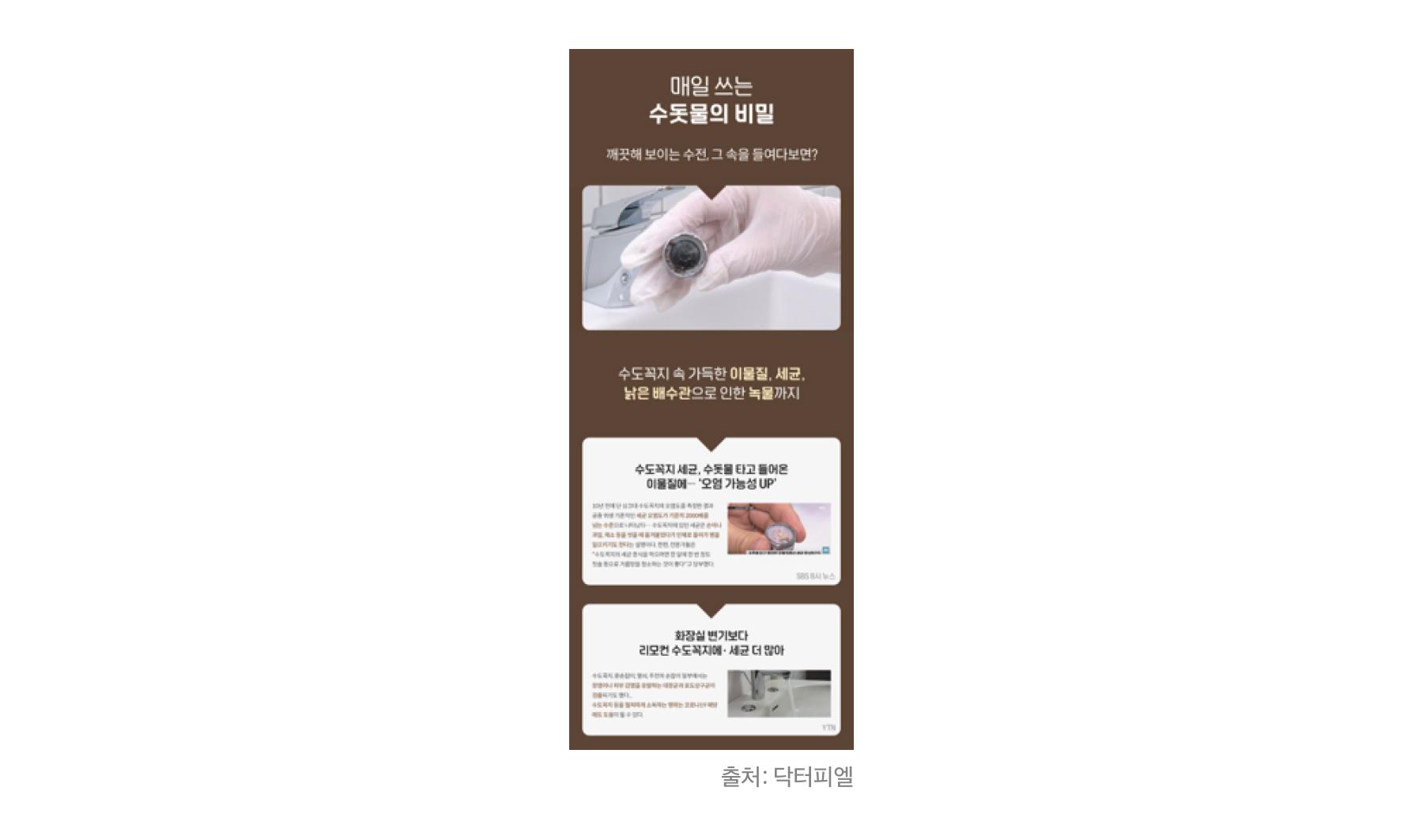 위 예시처럼 고객이 모르는 문제를 일깨워 주는 것도 방법이에요. 지금까지 수돗물을 사용하며 아무런 불편을 겪지 않았던 고객이라도, 위 상세페이지를 보면 수돗물이 꺼림칙하게 느껴질 거예요. 그 순간 해결책으로 수도꼭지 필터를 제시하는 거예요.