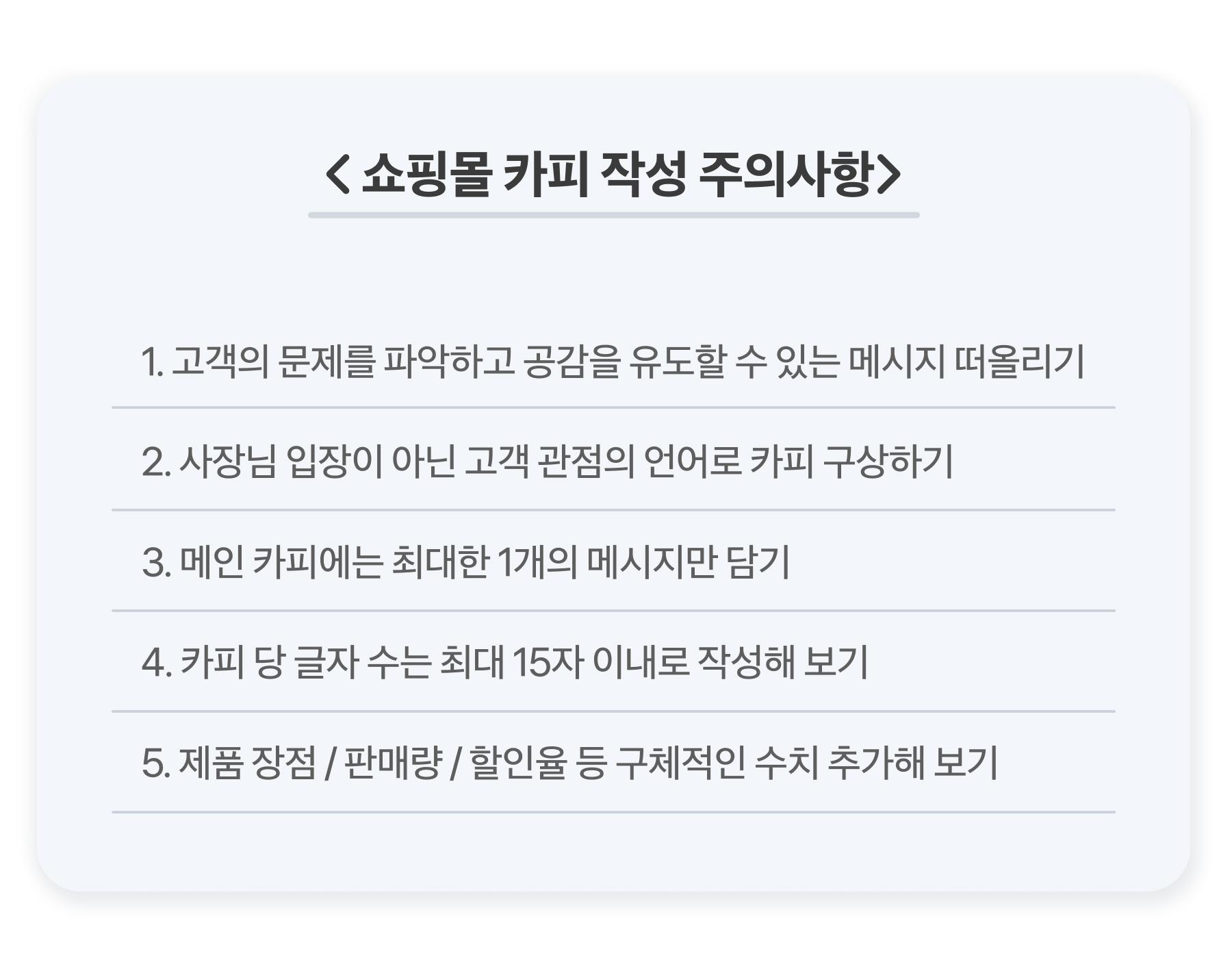 쇼핑몰 광고 카피에 자주 들어가는 내용 5