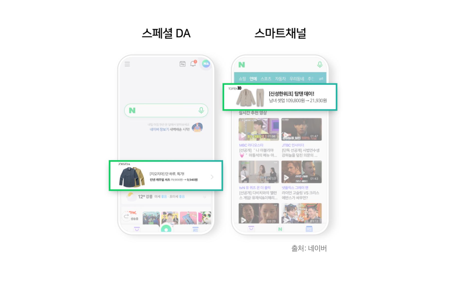 ✅ 네이버 텍스트형 배너 광고 네이버 광고 중 텍스트 중심 배너 카피를 살펴볼게요. 주로 네이버 모바일 메인 화면 하단 또는 개별 탭 상단에서 볼 수 있는 광고 유형인데요. 각각 ‘스페셜 DA’, ‘스마트채널’ 광고라는 이름으로 불려요.