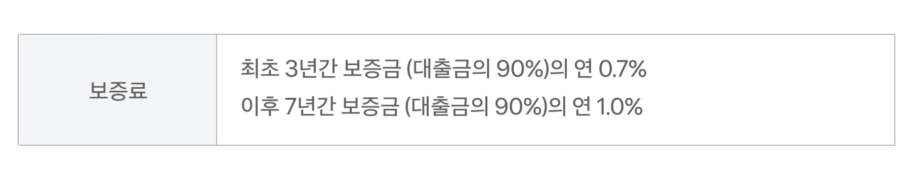 - 최초 3년간 보증금 (대출금의 90%)의 연 0.7%