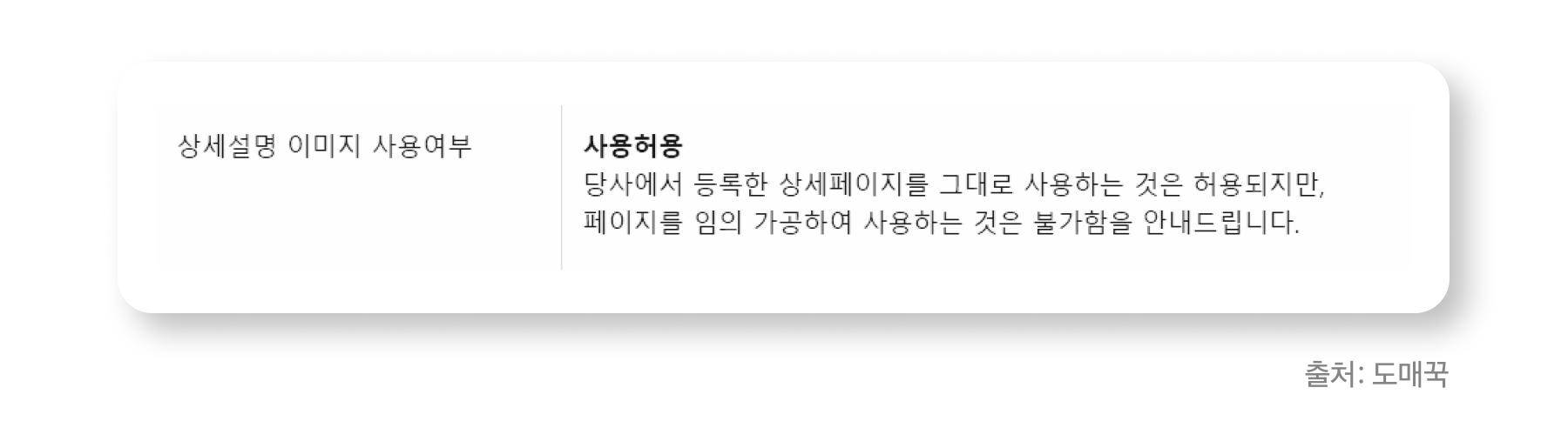 도매사이트로 위탁판매 상품 소싱하는 사장님 중에 도매사이트가 제공하는 상품 썸네일, 상세페이지를 그대로 사용하고 싶은 분도 계실 거예요. 대부분 사이트가 사용 허가를 해두지만, 상품에 따라 제한사항이 있을 수 있으니 꼭 확인해 보세요.