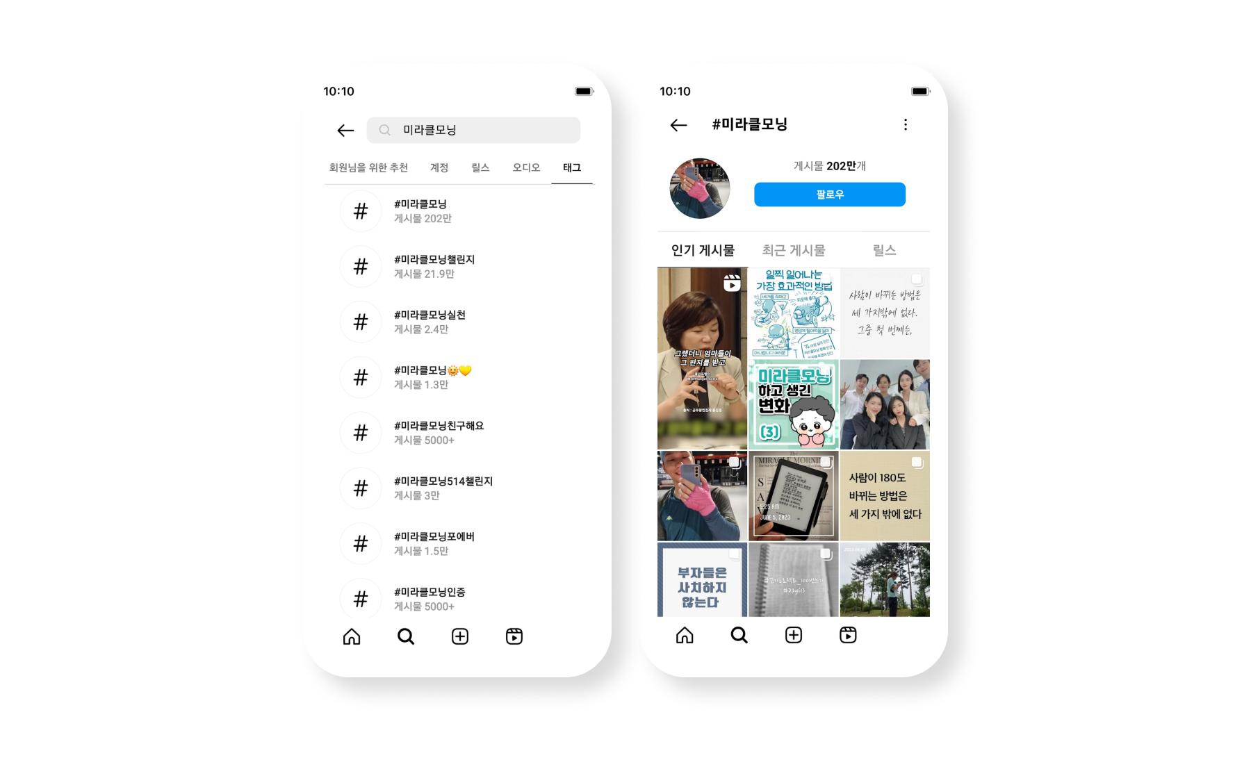 사용자가 많은 빅 해시태그*의 경우, 대형 계정에서 인기 게시글을 선점할 가능성이 높아요. 그래서 해시태그를 활용해도 노출이 잘되지 않을 확률이 높죠. 이제 막 계정 운영을 시작했다면 스몰 해시태그**를 먼저 공략해 보세요.