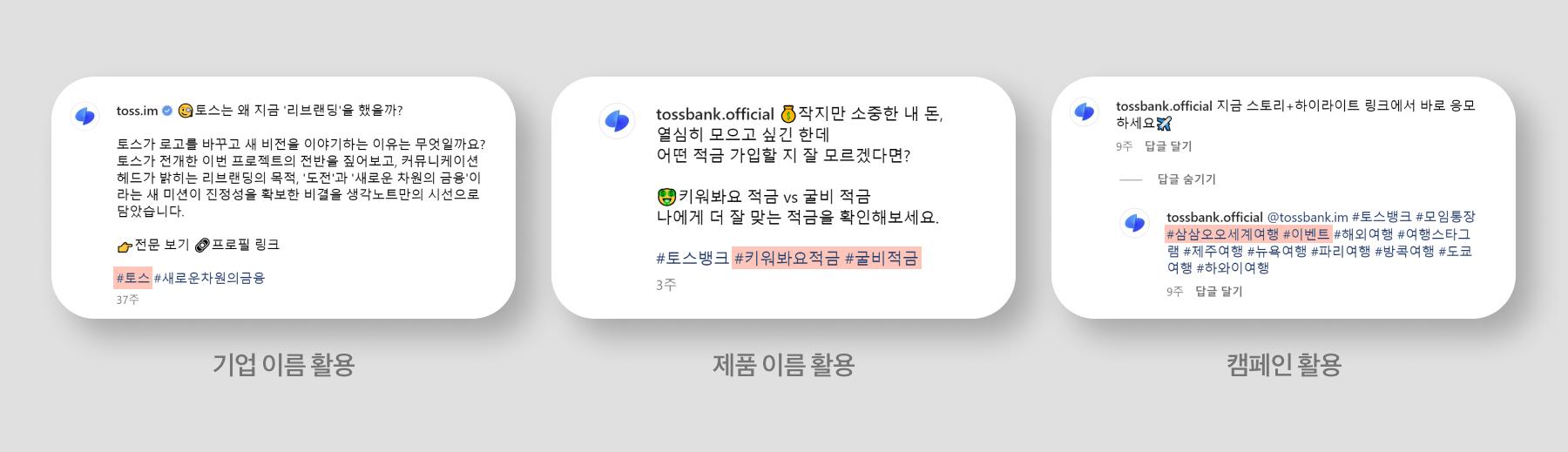 ‘토스’의 브랜드 해시태그를 만든다고 가정해 볼게요.