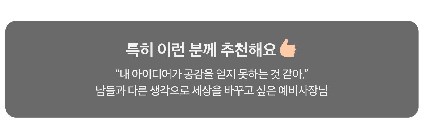 - 성공한 창업가들은 내 사업의 목표와 철학을 뚜렷하게 설정하고, 적극적으로 고객과 만났어요.
