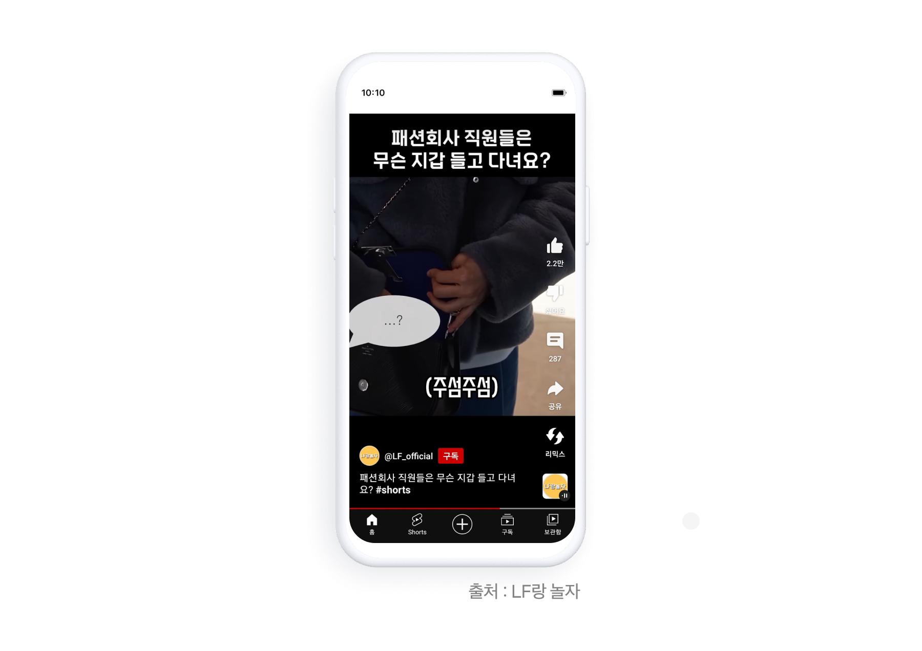 패션, 쇼핑, 라이프스타일 가벼운 정보를 담은 쇼츠로 소비자에게 친근하게 다가간 LF의 사례를 보며 내 브랜드의 숏폼 방향을 생각해 볼 수 있어요.