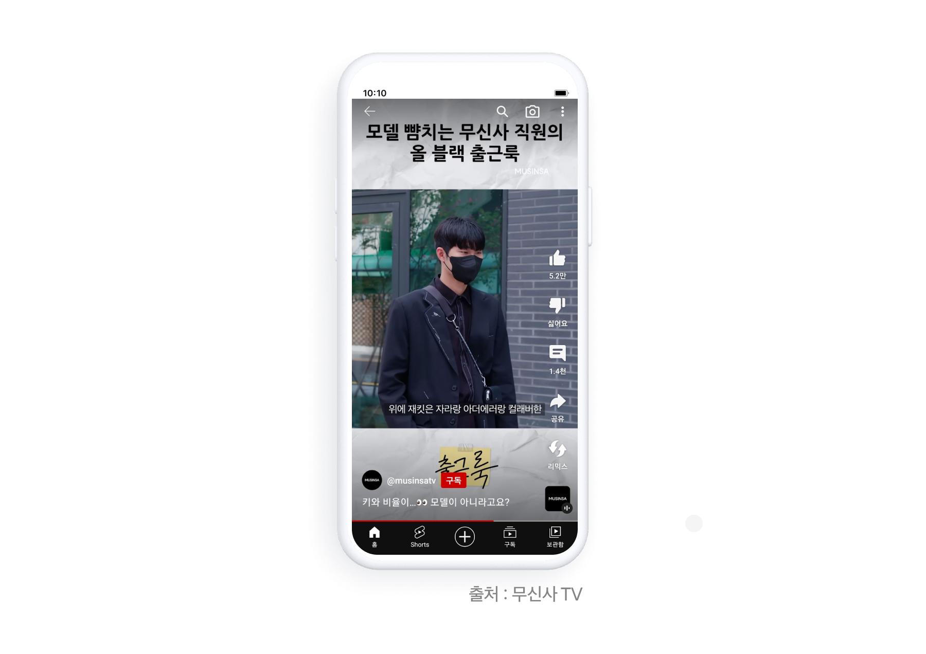무신사는 직원들이 직접 자신의 스타일링을 소개하는 ‘출근룩’ 콘텐츠로 조회 수 300만 회를 기록했어요. 쇼츠에서 소개된 상품은 영상 게재 후 조회 수가 8천 회 달성할 만큼 화제였다고 해요.