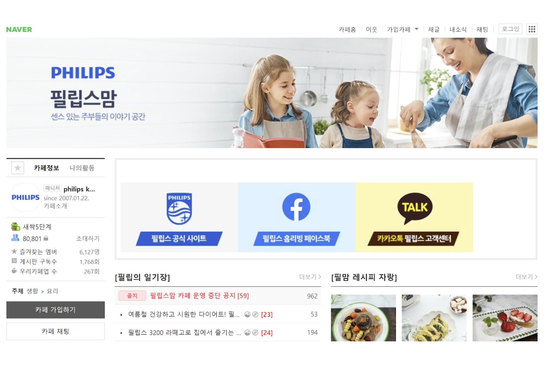필립스도 커뮤니티를 운영해 에어프라이어의 대중화를 이끌었어요.