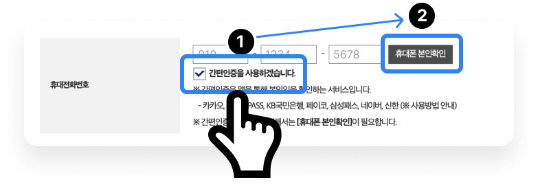 ✅ ‘간편인증을 사용하겠습니다’ 항목을 체크 후 휴대폰 본인확인을 해주세요. 간편인증을 사용할 경우 토스페이먼츠에서 ‘통신판매업 바로신청‘ 서비스로 편하게 통신판매업 신고와 PG서비스 가입을 끝낼 수 있어요.