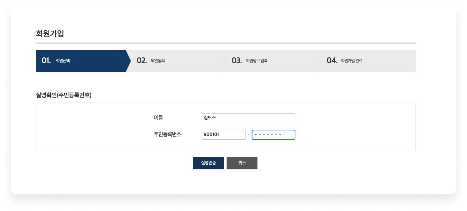 이름과 주민등록번호를 입력해 실명확인을 해주세요.