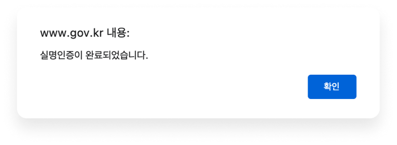 위와 같이 ‘실명인증 완료’ 안내 메시지가 뜨면 ‘확인’버튼을 눌러 회원정보를 입력해 주세요.