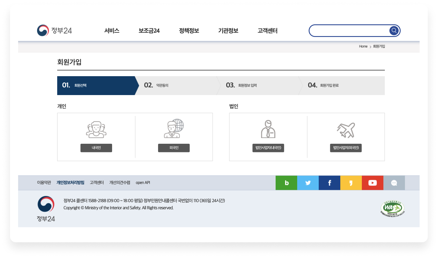 대한민국 정부가 운영하는 사이트예요. 정부24 홈페이지 회원가입을 하면 직접 행정기관에 방문하지 않아도 집에서 편하게 민원 업무를 처리할 수 있어요.