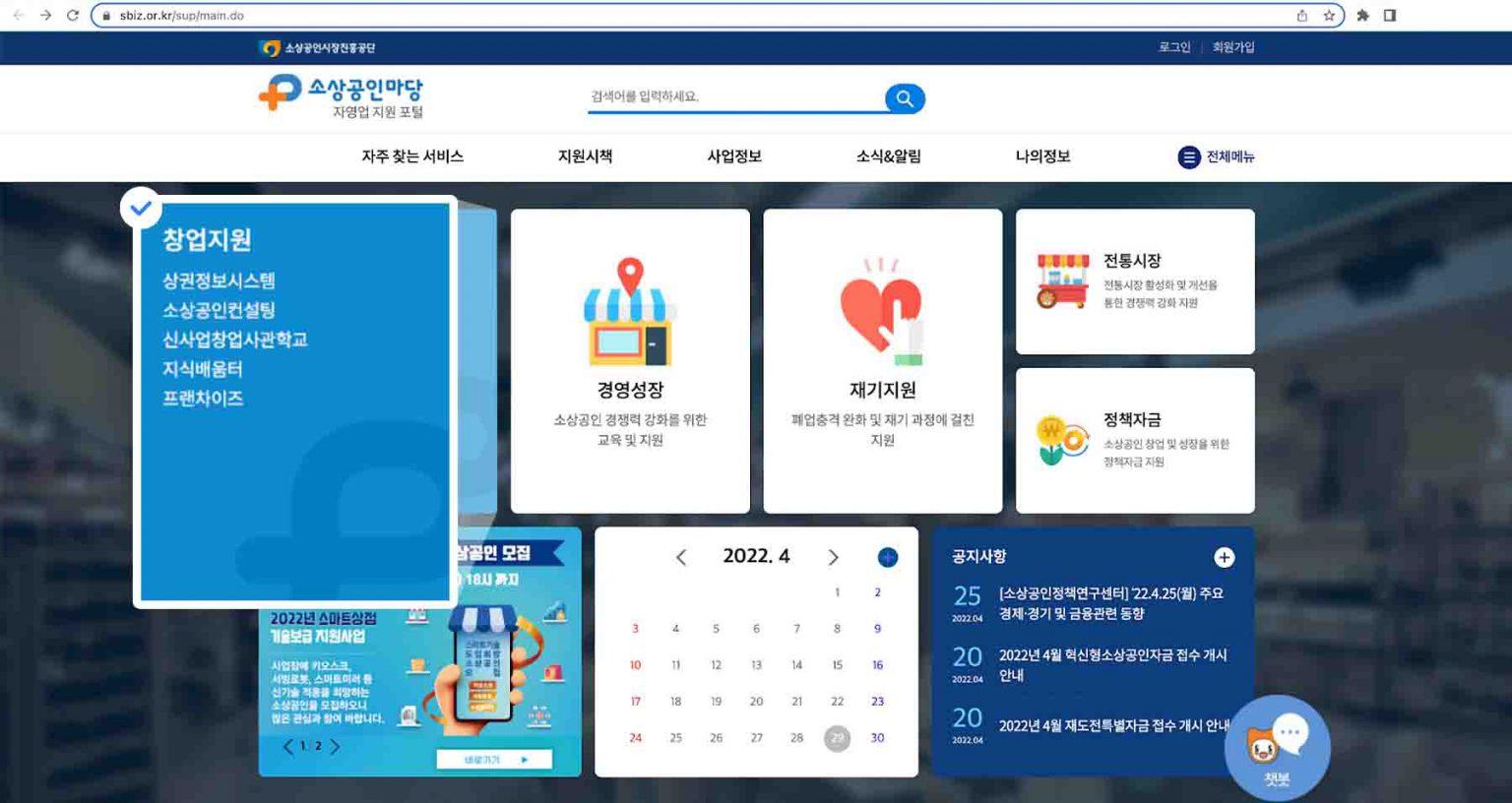 ✅ 소상공인마당 자영업 지원 포털 소상공인진흥공단에서 운영하는 포털사이트예요. 크게 5가지 분야의 창업지원 프로그램을 소개하고 있어요. 온라인 쇼핑몰 창업지원금과 가장 연관이 있는 사업 공고는 ‘신사업 창업 사관학교‘ 프로그램이에요.
