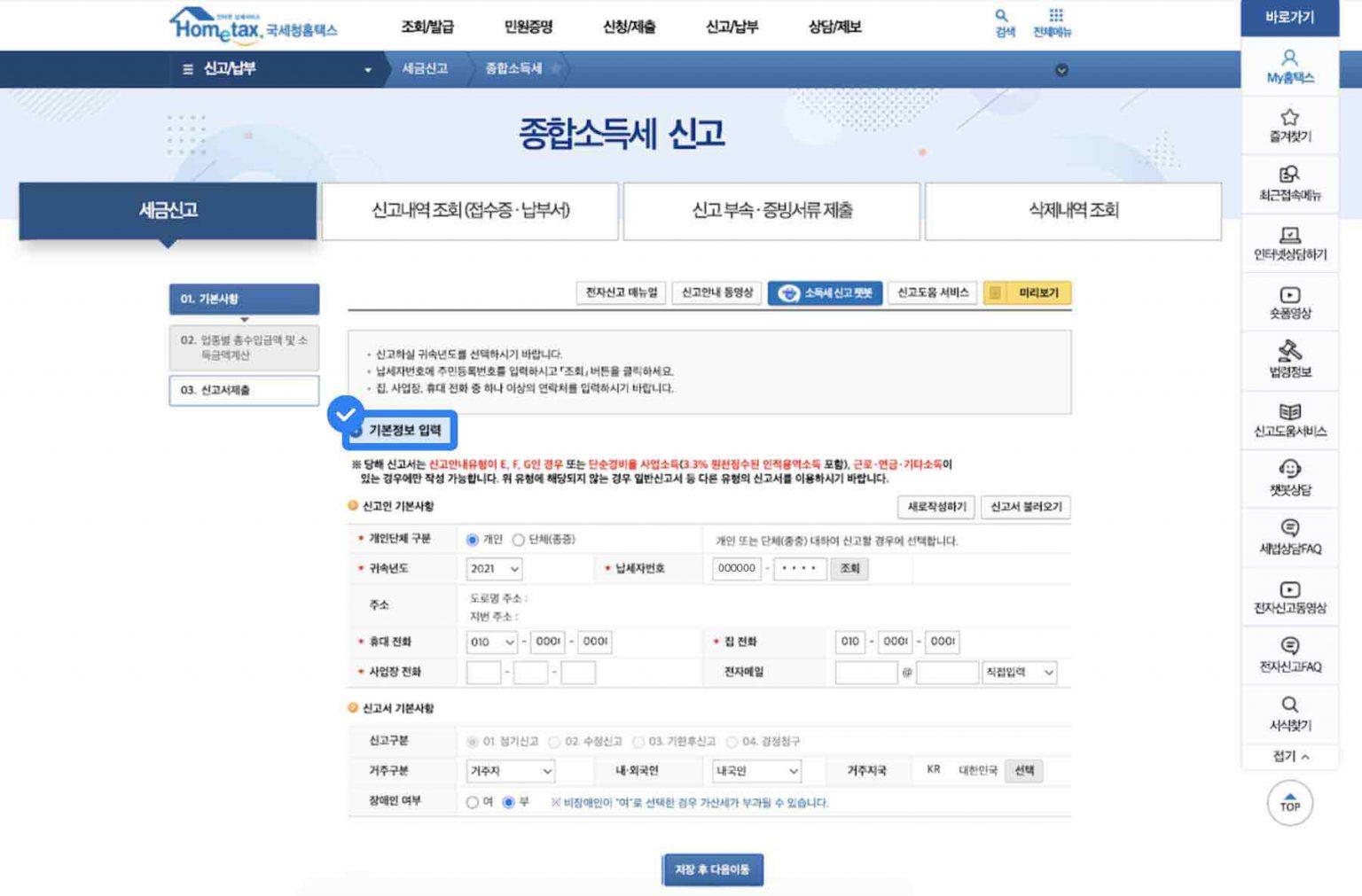 홈택스에서 직접 신고할 때 ‘단순경비율’을 선택하면 사업소득 부분이 자동 계산돼요.